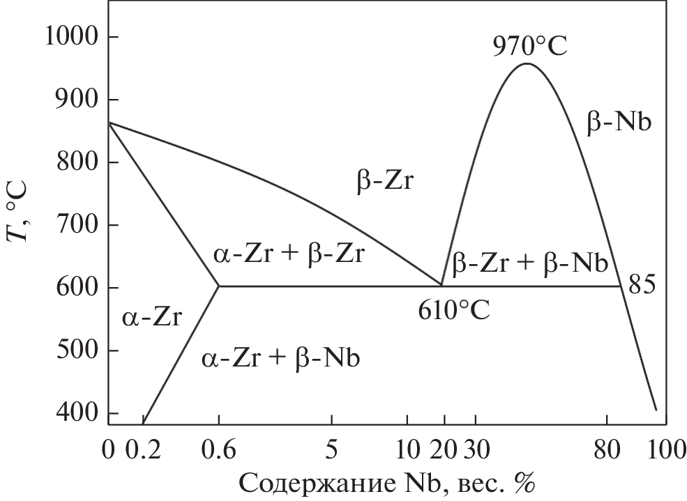 - Zhu Y.T., Devletian J.H. Precise determination of isomorphous and eutectoid transformation temperatures in binary and ternary Zr alloys // J. Mater. Sci. 1991. V. 26. P. 6218–6222.