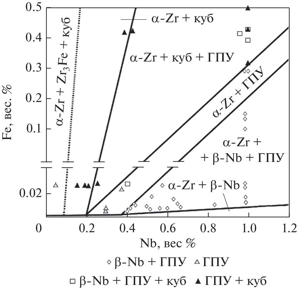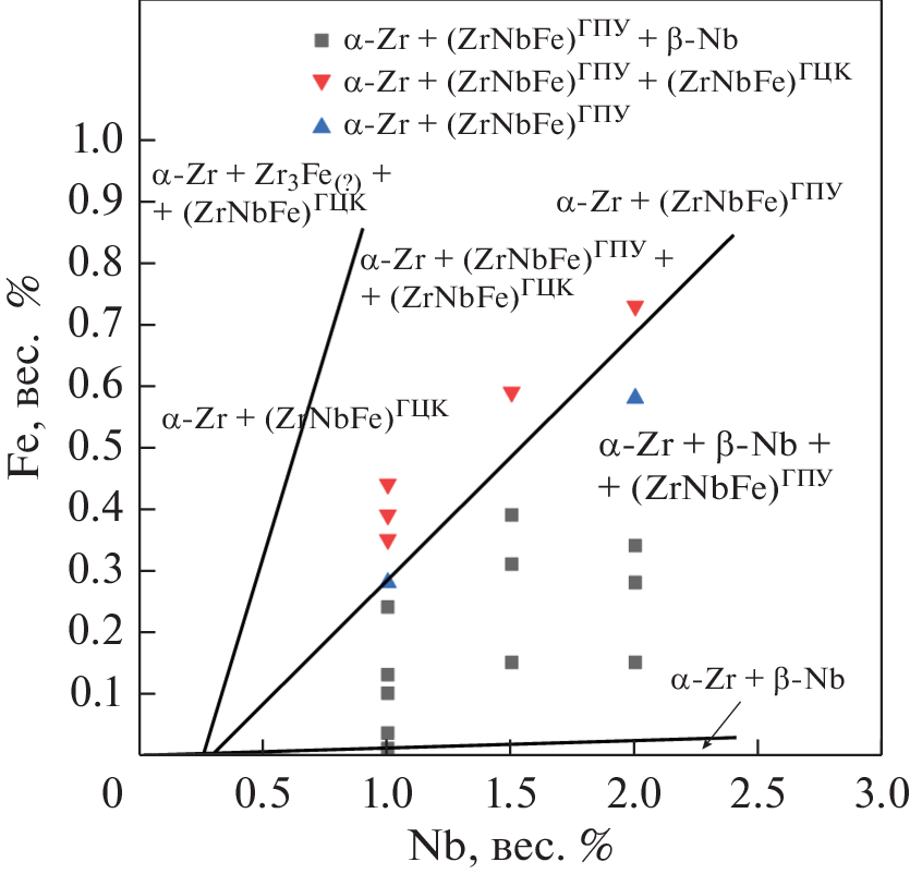 - Granovsky M.S., Canay M., Lena E., Arias D. Experimental investigation of the Zr corner of the ternary Zr–Nb–Fe phase diagram // J. Nucl. Mater. 2002. V. 302. P. 1–8. https://doi.org/10.1016/S0022-3115(02)00718-3