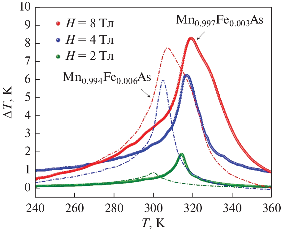 - Wada H., Tanabe Y. Giant magnetocaloric effect of MnAs1 – xSbx // Appl. Phys. Lett. 2001. V. 79. P. 3302–3304.