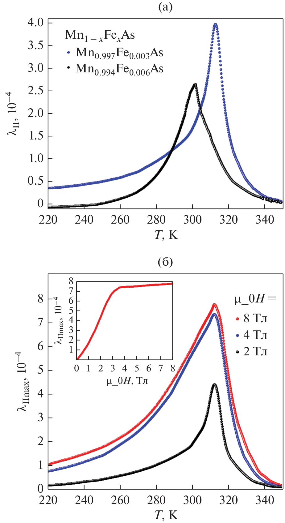 - Ido H., Yasuda S., Kido G. Magnetization and magnetostriction of MnAs0.7Sb0.3 in the paramagnetic temperature region // J. Appl. Phys. 1991. V. 69. P. 4621–4623.