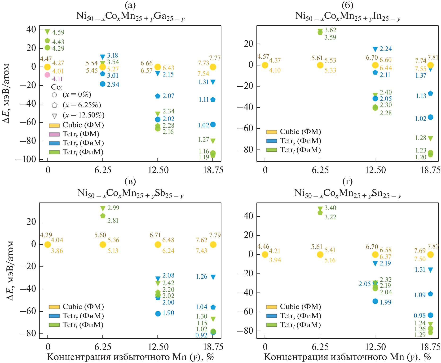 - Grünebohm A., Herper H.C., Entel P. On the rich magnetic phase diagram of (Ni, Co)–Mn–Sn Heusler alloys // J. Phys. D: Appl. Phys. 2016. V. 49. № 39. P. 395 001.