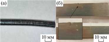 Рис. 1. Исходные прутковые заготовки (а) и холоднокатаные полосы сплава (б).