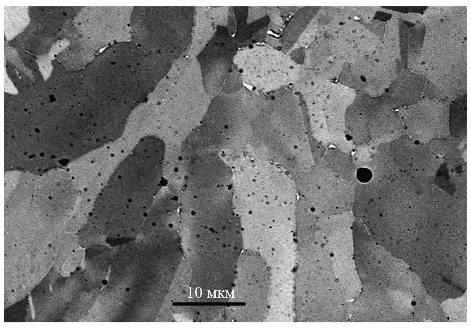 Рис. 10. Структура стали 316L-ПЛС в плоскости, параллельной направлению построения, после отжига при температуре 1075°С в течение часа (растровая электронная микроскопия).