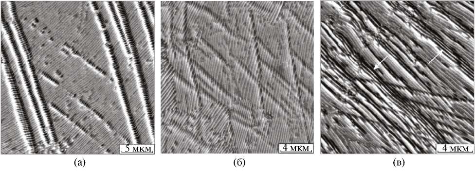 Следует отметить, что говорить о четкой определенности по отношению к термину “перлитная колония” нельзя, поскольку кроме такого фактора, как угол разориентации пластин в смежных микрообъемах следует учитывать также ориентацию ферритной матрицы. При проведении исследований, выполненных авторами представленной работы, а также другими специалистами, отмечалось отсутствие как высоко, так и малоугловых границ между многими микрообъемами, в пределах которых цементитные пластины были существенно разориентированы (рис. 3в). Подробный анализ этой проблемы был проведен 30 лет назад в работе [6], однако и сегодня нет оснований полагать, что термин “колония перлита” можно воспринимать однозначно. Простая аналогия между зернами, например, феррита, и колониями перлита не обоснована.
