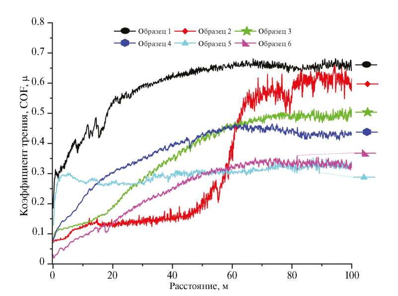 Рис. 10. Изменение COF при износе образцов.