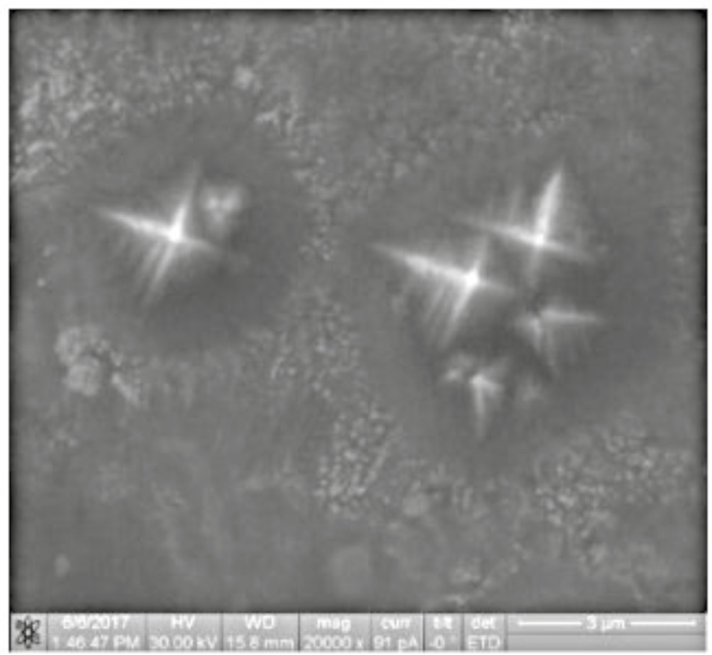 Таким образом, каждая зона лазерного облучения с образовавшимися дендритами – это поле диаметром 0.4–2.0 мм, которое можно представлять, как множество наноантенн микрометрового размера (наноточек).