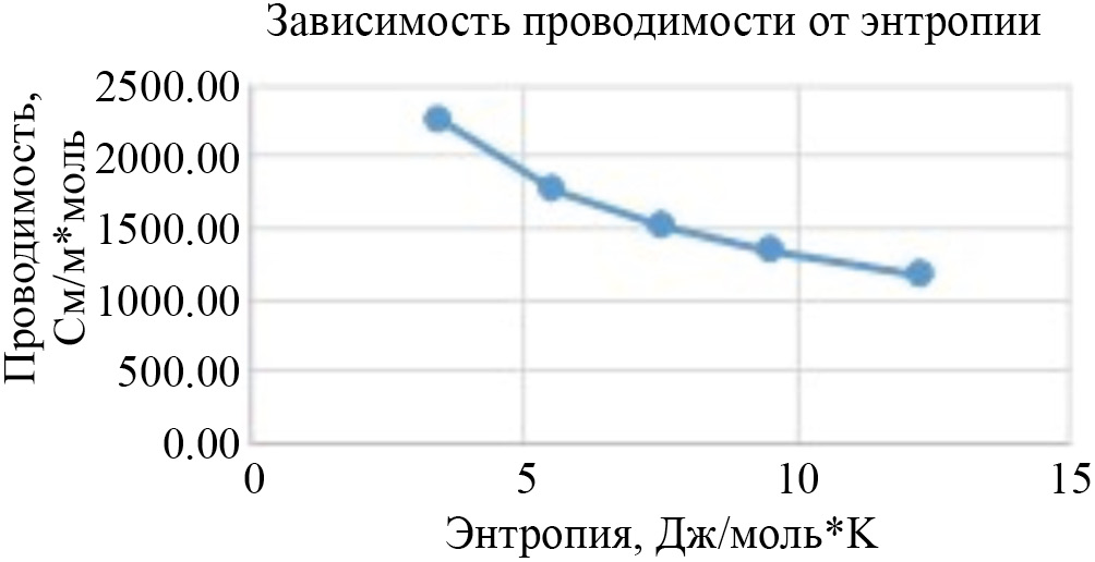 Рис. 15. Зависимость поверхностной электропроводимости от величины энтропии.