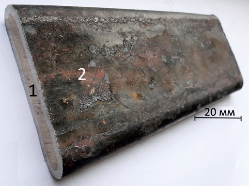 Рис. 1. Внешний вид сэндвич-пластины: 1 – композит; 2 – стальная оболочка.