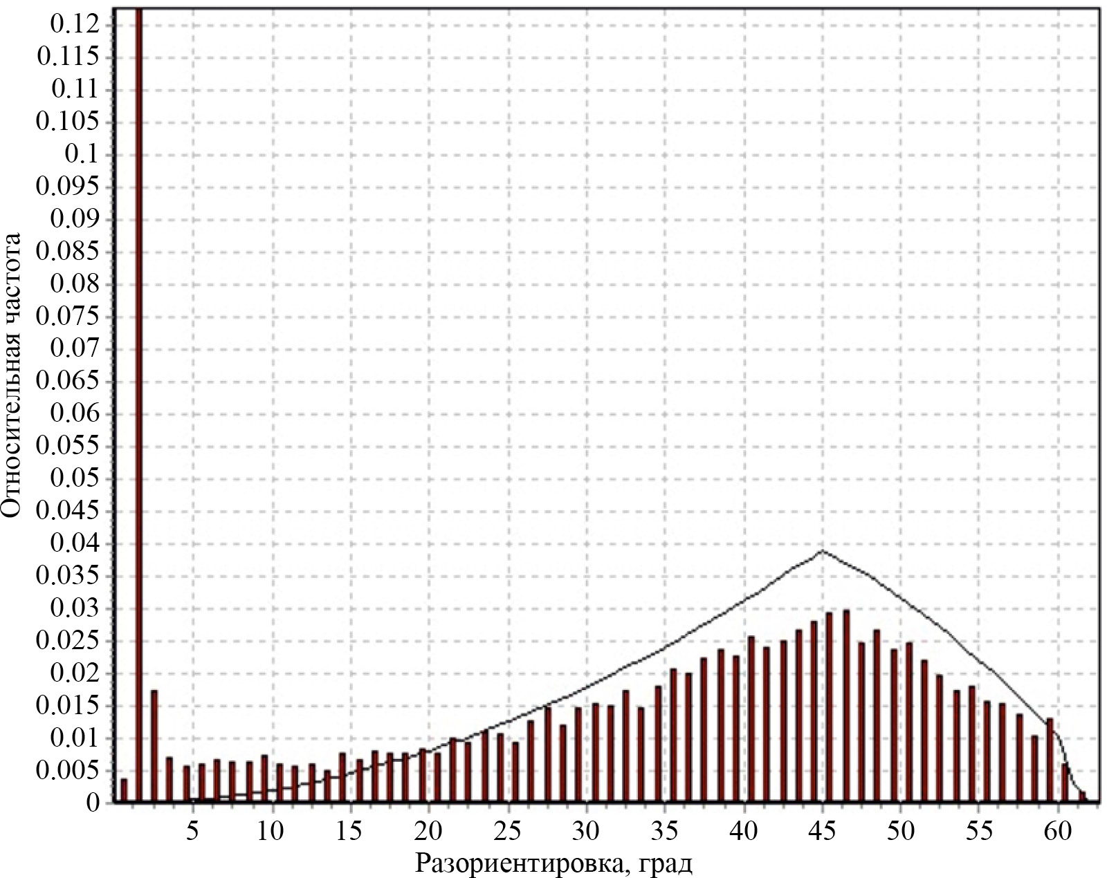 Рис. 5. Разориентировка зерен в аустенитной матрице исходного композита.