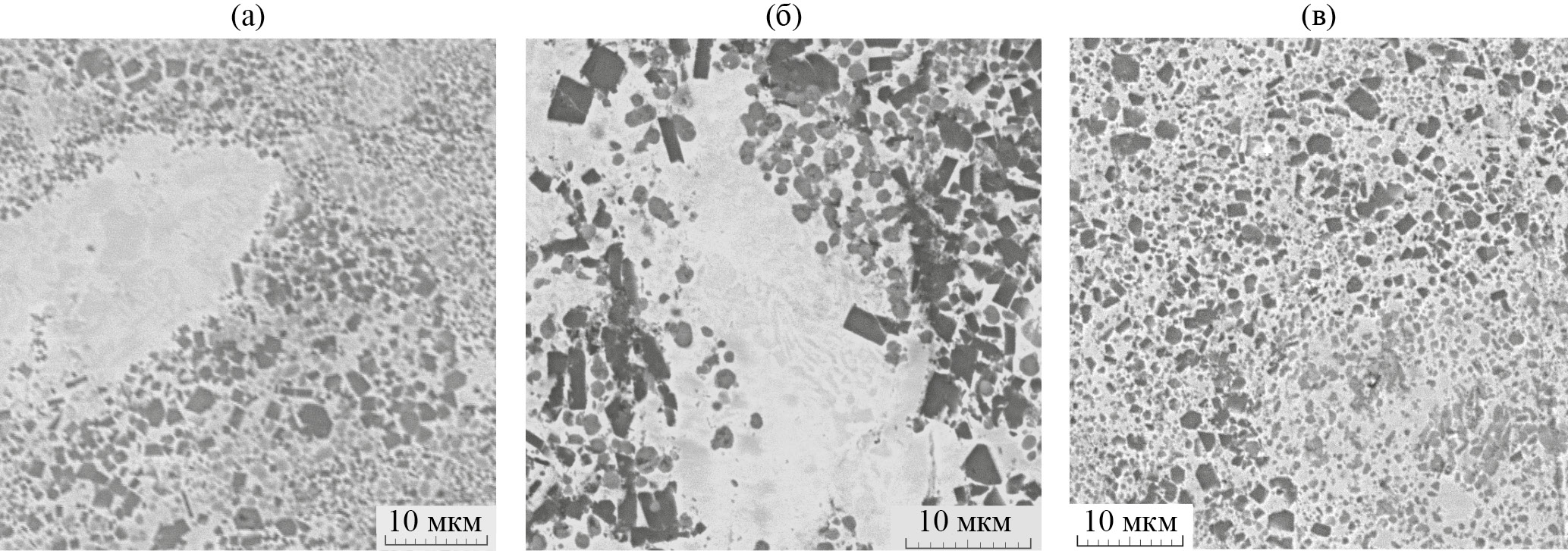 Рис. 7. Микроструктура композита после обработок: а – режим 1; б – режим 2, в – режим 3.