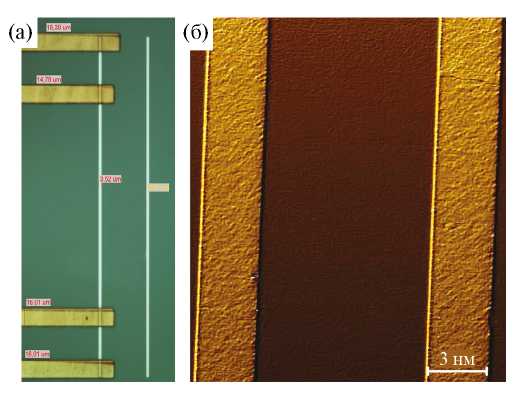Микрообъекты в виде мостов Холла шириной 200 мкм и длиной 2000 мкм изготовлены методом фотолитографии так, что ОЛН была направлена перпендикулярно направлению тока. Контактные площадки изготовлены при помощи lift-off процедуры.