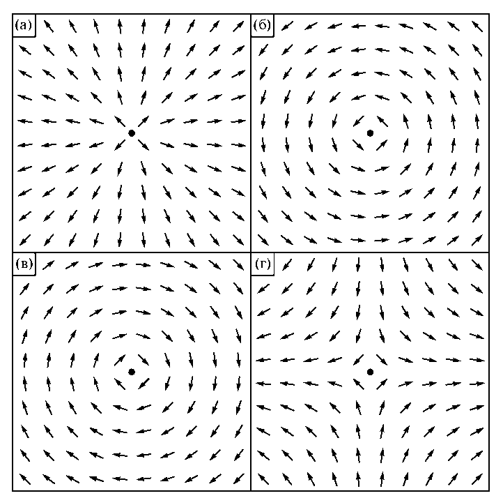 соответствует поле скорости при наличии источника (стока) мощности (рис. 1а):