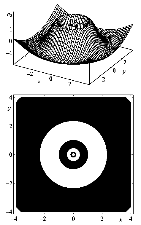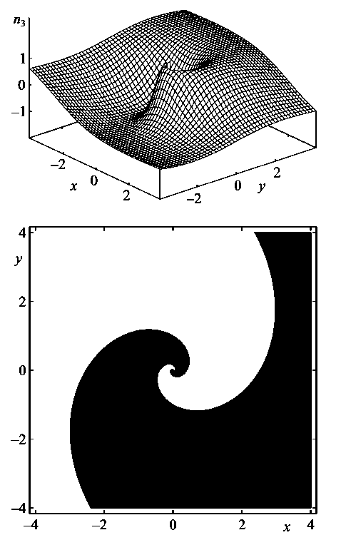 Далее часть главы посвящена аналитическим методам выявления структуры вихревых состояний изтропного магнетика аналитическими методами. Хотя применимость аналитических методов ограничена, их научная значимость не вызывает сомнений. Они позволяют достаточно полно исследовать свойства нелинейных структур и качественно предсказать влияние других взаимодействий, не входящих в первоначальную модель. Кроме того, точные решения являются “затравочными” функциями при компьютерном моделировании многих систем. Точные решения служат прекрасными тестами для приближенных методов интегрирования моделей и дают представления о структуре общего решения. Этим не исчерпывается значение точных решений. Их знание позволяет изучить свойства структур и глубоко проникнуть в физику явлений, описываемых моделями.