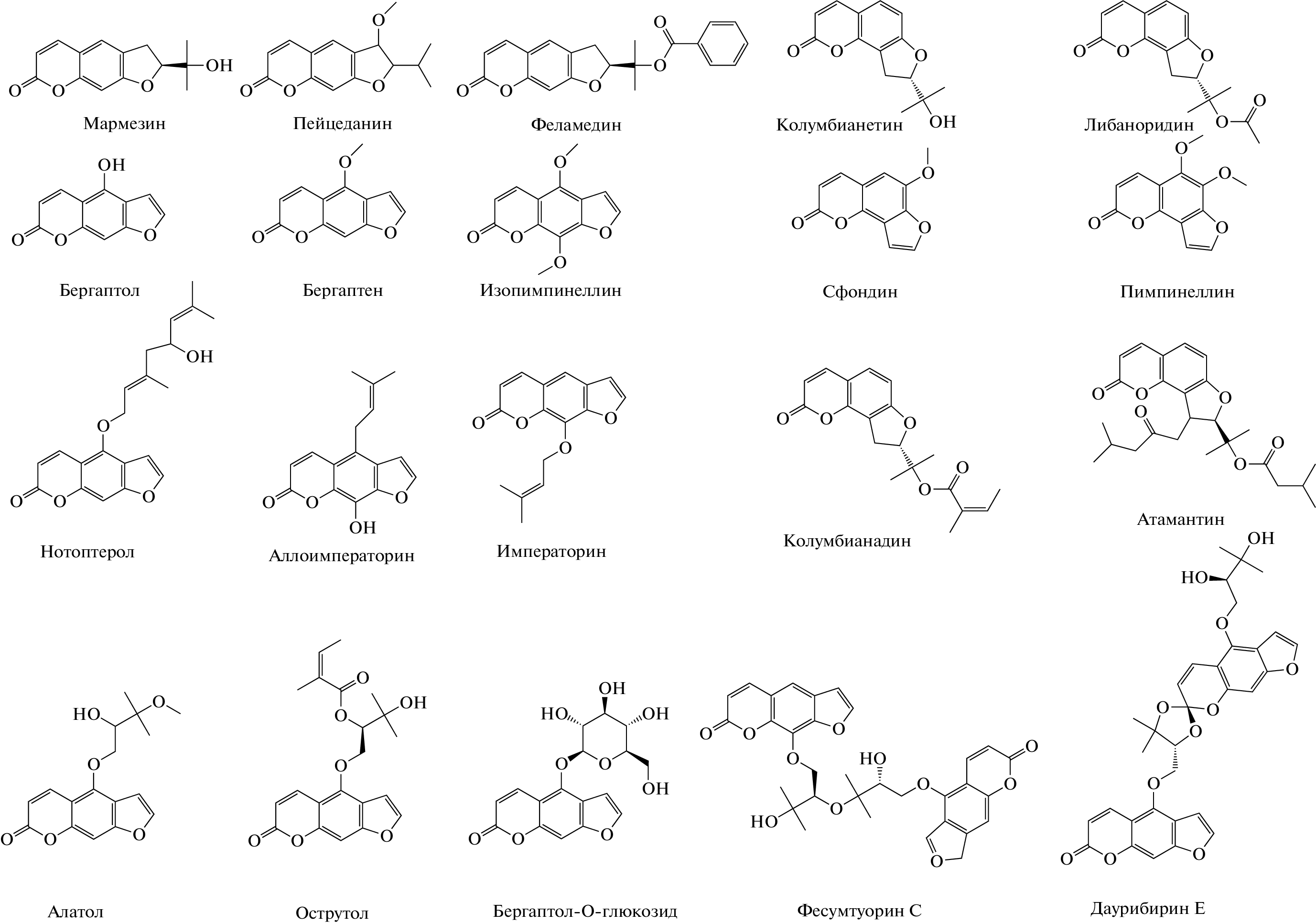 - Melough M.M., Cho E., Chun O.K. Furocoumarins: A review of biochemical activities, dietary sources and intake, and potential health risks // Food Chem. Toxicol. 2018. V. 113. P. 99. https://doi.org/10.1016/j.fct.2018.01.030