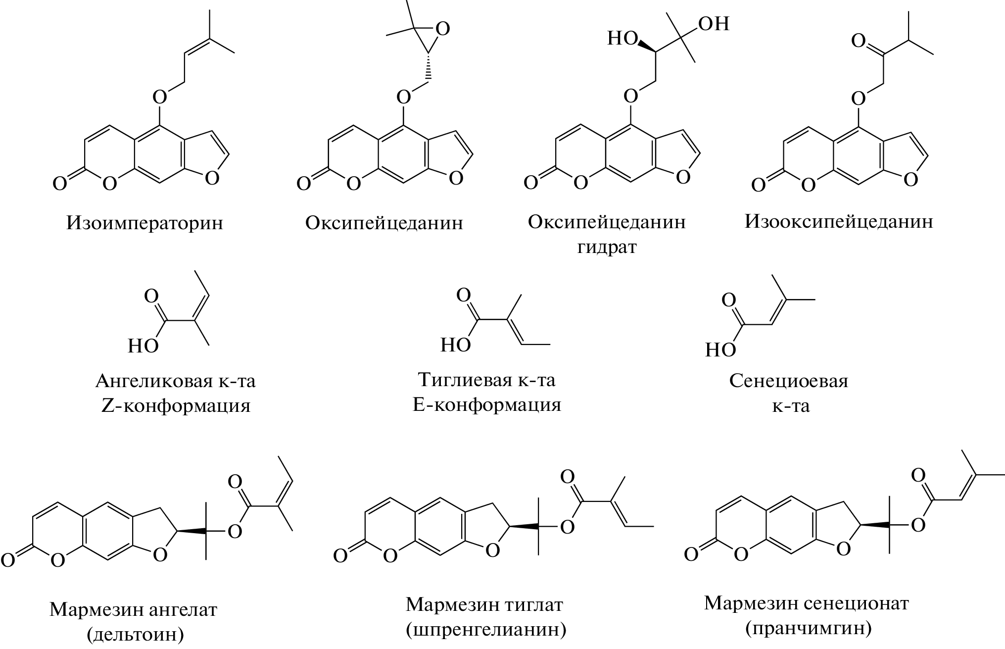 - Bruni R., Barreca D., Protti M., Brighenti V., Righetti L., Anceschi L., Mercolini L., Benvenuti S., Gattuso G., Pellati F. Botanical sources, chemistry, analysis, and biological activity of furanocoumarins of pharmaceutical interest // Molecules. 2019. V. 24. P. 2163. https://doi.org/10.3390/molecules24112163