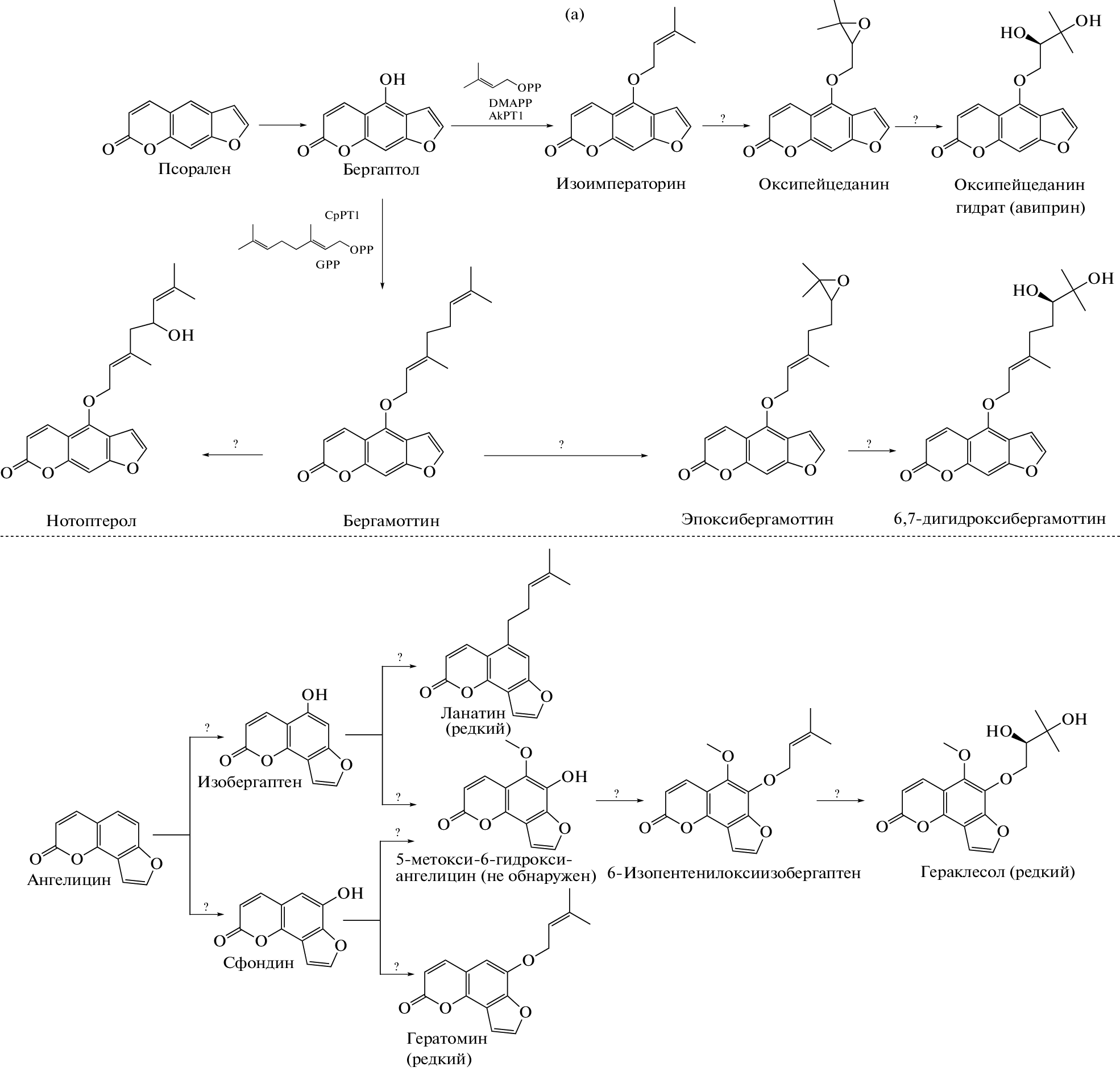 - Munakata R., Kitajima S., Nuttens A., Tatsumi K., Takemura T., Ichino T., Galati G., Vautrin S., Bergès H., Grosjean J., Bourgaud F., Sugiyama A., Hehn A., Yazaki K. Convergent evolution of the UbiA prenyltransferase family underlies the independent acquisition of furanocoumarins in plants // New Phytol. 2020. V. 225. P. 2166. https://doi.org/10.1111/nph.16277