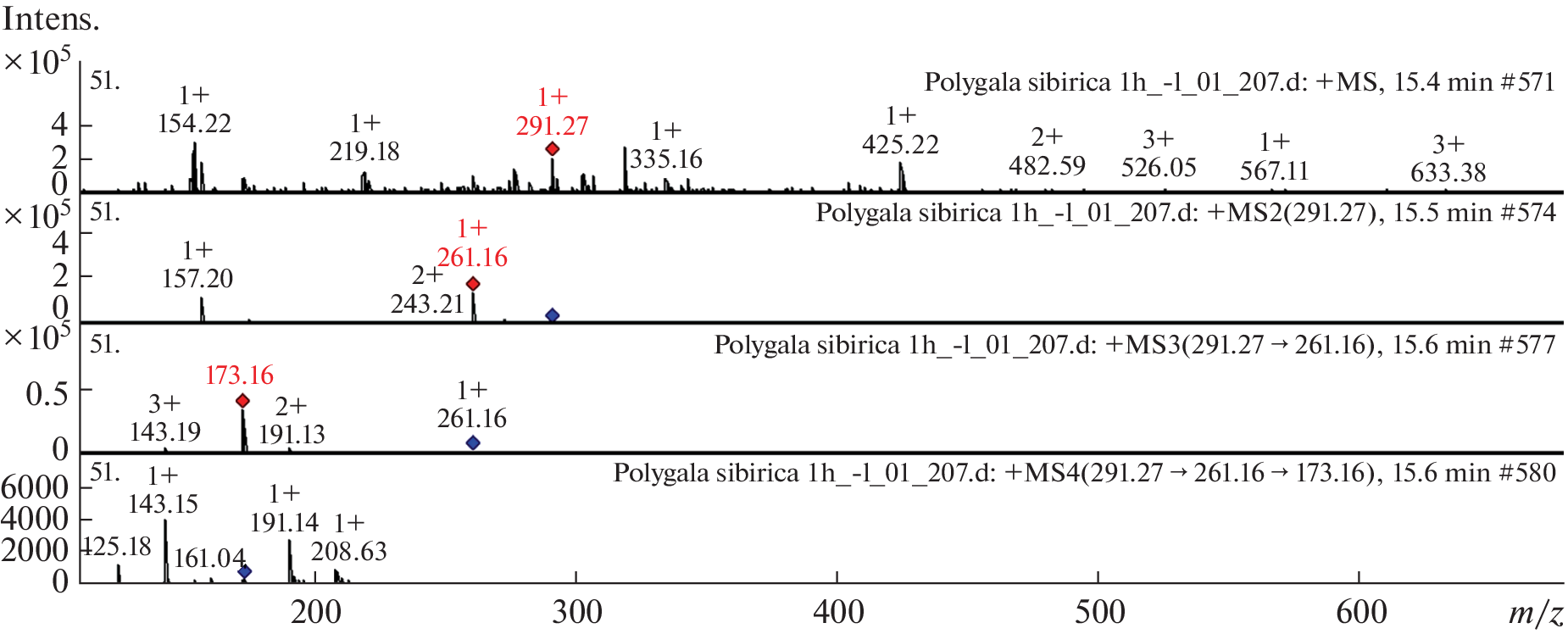 - Geng P., Sun J., Zhang M., Li X., Harnly J. M., Chen P. Comprehensive characterization of C-°glycosyl flavones in wheat (Triticum aestivum L.) germ using UPLC°-PDA°-ESI/HRMSn and mass defect filtering // J. Mass Spectrom. 2016, V. 51(10). P. 914. https://doi.org/10.1002/jms.3803