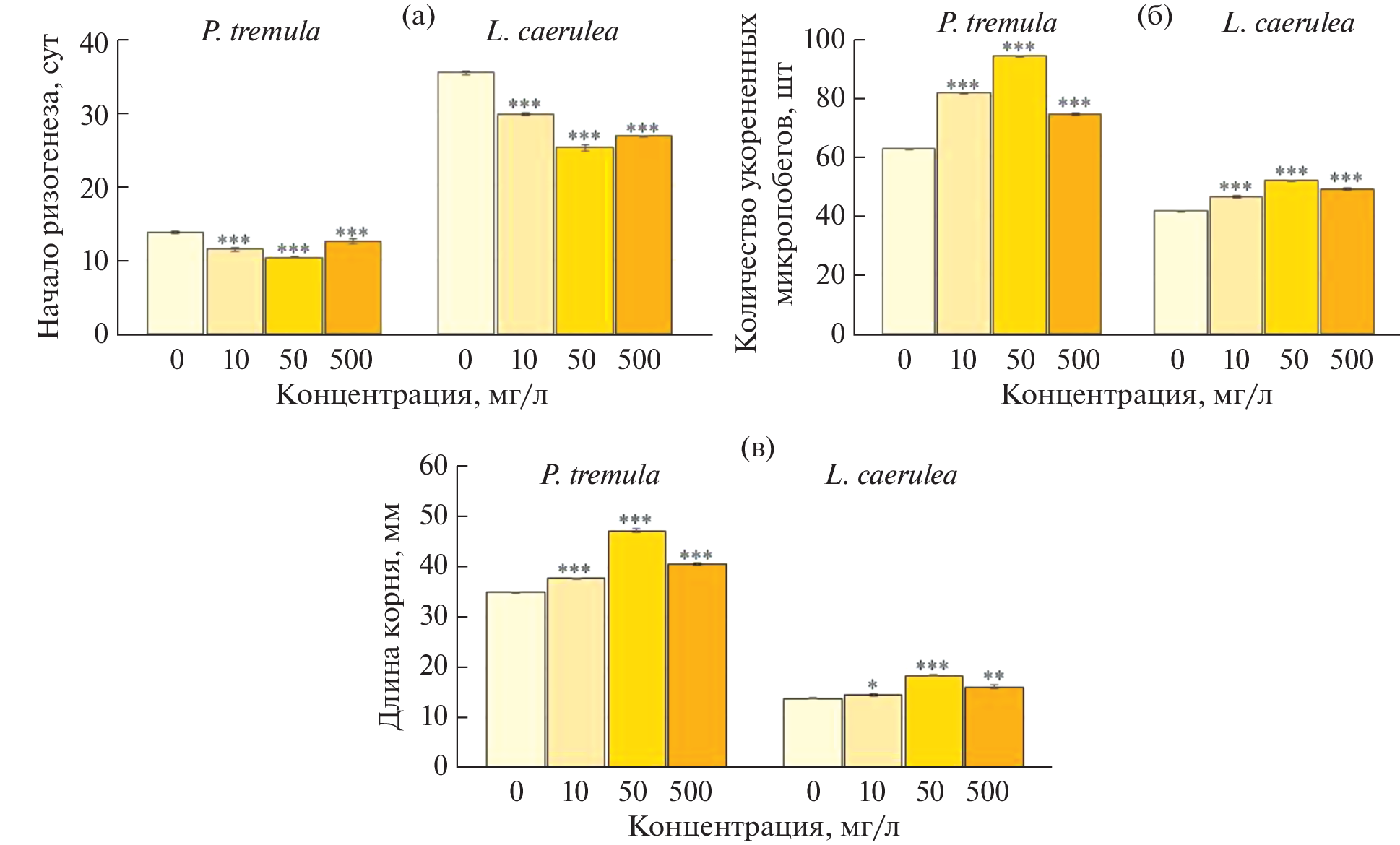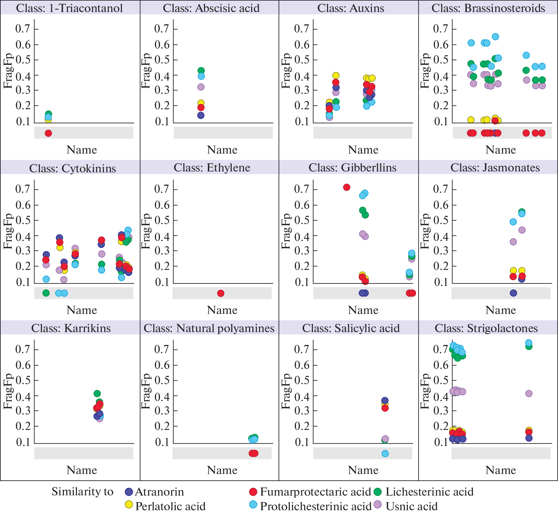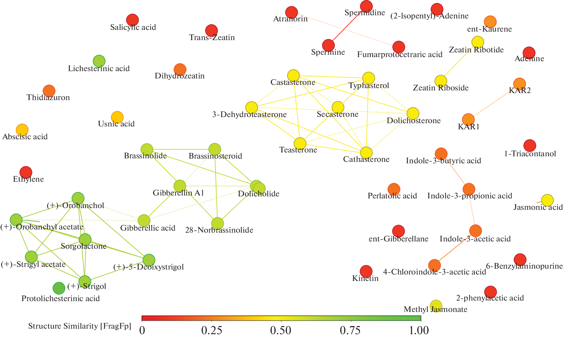 В работе предложен и апробирован новый подход оптимизации биотехнологических процессов, в том числе процесса микроклонального размножения. Предлагаемый метод основан на построении карты подобия структур молекул вторичных метаболитов растительных экстрактов и молекул – регуляторов процессов морфогенеза растений (прежде всего фитогормонов) с последующим прогнозированием действия экстракта. В качестве примера был использован экстракт лишайника Cetraria islandica (L.) Ach. (Parmeliacea), для которого хорошо известен спектр содержащихся вторичных метаболитов. Выявлено структурное сходство алифатических вторичных соединений лишайника (протолихестериновая и лихестериновая кислоты) со стриголактонами (в большей степени), а также с гиббереллинами и брассиностероидами. На основе анализа полученных результатов был сделан прогноз о дозозависимом воздействии экстракта лишайника C. islandica на ростовые процессы и ризогенез микропобегов in vitro. Эта гипотеза была экспериментально проверена в экспериментах при микроклональном размножении высших растений Lonicera caerulea L. и Populus tremula L. В результате проведенных работ установлено, что добавление экстракта из C. islandica в концентрации 10–50 мг/л в состав питательной среды увеличивало коэффициент размножения L. caerulea (на 31%) и P. tremula (на 8%).Экспериментально доказана ризогенная активность экстракта лишайника в тех же концентрациях (10–50 мг/л среды), схожая с активностью стриголактонов и гиббереллинов. Также показано положительное влияние экстракта C. islandica (50 мг/л) на элонгацию микропобегов обеих культур и геммогенез P. tremula. Предложенный подход позволяет оптимизировать исследования, направленные на выявление эффекта различных экстрактов на морфогенез растений in vitro путем предварительного построения карты подобия содержащихся в экстрактах вторичных метаболитов (в том числе по данным литературы) и известных регуляторов роста (в том числе фитогормонов) с последующим прогнозированием действия экстракта.