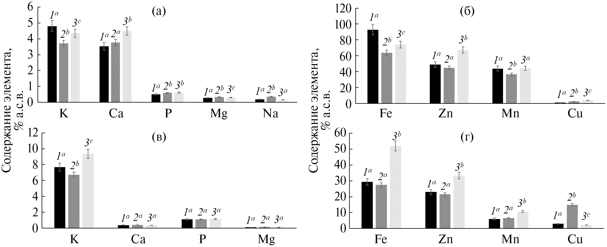 Статистический анализ. Вегетационный опыт проводили дважды, размер оцениваемой выборки – 10 растений в каждом варианте опыта. Статистическая оценка полученных данных проводилась путем расчета основных описательных характеристик: среднего, стандартного отклонения, доверительного интервала с применением программ Excel 2016 и Statistica 8 (“Stat-Soft, Inc.”, США). Апостериорный тест Тьюки был использован для выявления различий между средними значениями для каждой характеристики. Значение P ≤ 0.05 считалось приемлемым пределом статистической значимости. Значения с разными верхними индексами в столбце достоверно различались (P ≤ 0.05).