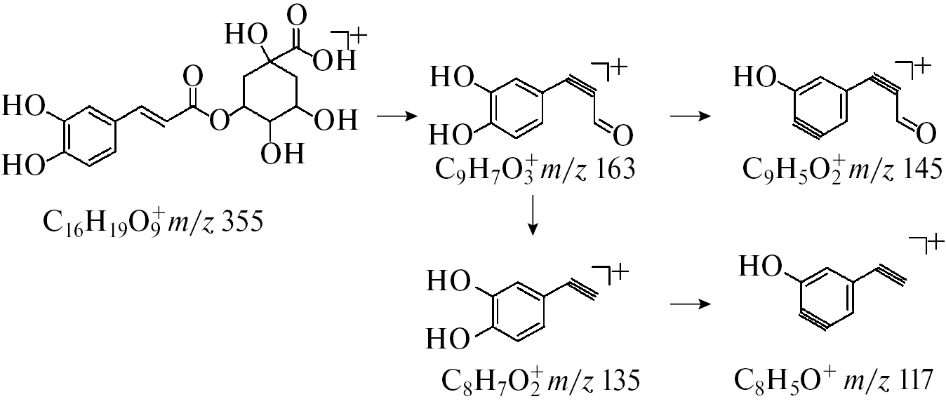 Рис. 3. Путь фрагментации молекулы хлорогеновой кислоты.
