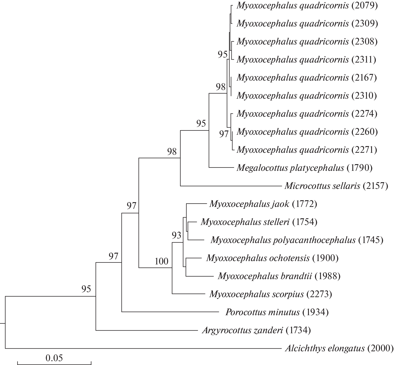 Genetic Differentiation of the Fourhorn Sculpin Myoxocephalus quadricornis (Linnaeus, 1758) and Its Position in the Tribe Myoxocephalini Taranetz (Cottidae: Myoxocephalinae)
