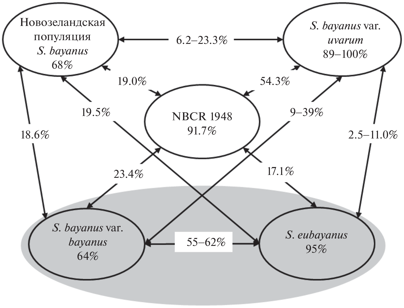 С помощью методов молекулярной и классической генетики изучено генетическое родство дрожжей комплекса Saccharomyces bayanus и обнаружена дивергентная популяция этих дрожжей в Новой Зеландии и Австралии. Комплекс S. bayanus включает четыре генетические популяции: S. bayanus var. bayanus, S. bayanus var. uvarum, S. eubayanus и новозеландская. Штаммы новозеландской популяции существенно отличаются по нуклеотидным последовательностям ядерных (FSY1, HIS3, MET2) и митохондриальных (FUN14, COX2) генов и образуют полустерильные гибриды с остальными популяциями: 6.2–23.3%. Между S. bayanus var. bayanus, S. bayanus var. uvarum, S. eubayanus и новозеландской популяцией нет полной межвидовой постзиготической изоляции: все гибриды имели регулярное мейотическое расщепление контрольных ауксотрофных маркеров. Согласно полученным результатам указанные генетические популяции относятся к одному биологическому виду, обладая дивергенцией геномов на уровне таксономических разновидностей.
