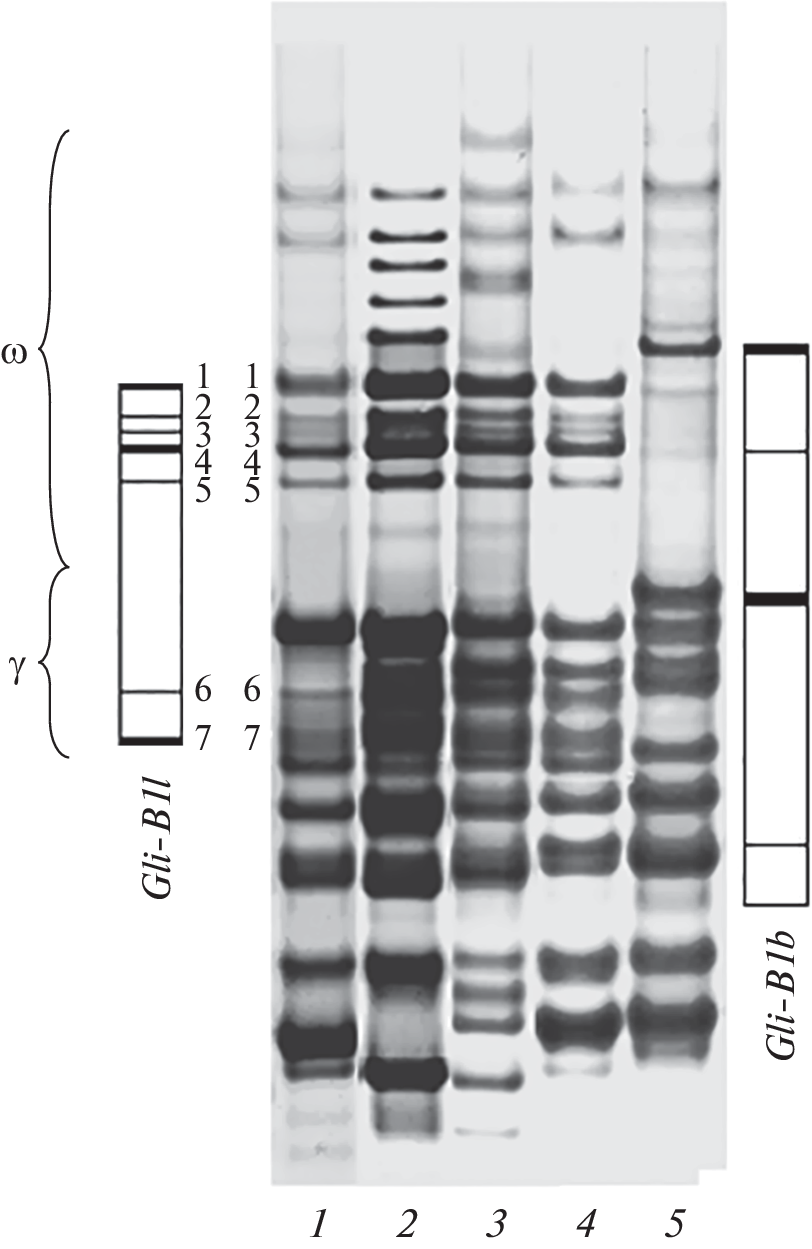 - Liu C.-Y., Shepherd K.W. Inheritance of B subunits of glutenin and ω- and γ-gliadins in tetraploid wheats // Theor. Appl. Genet. 1995. V. 90. P. 1149–1157. https://doi.org/10.1007/BF00222936