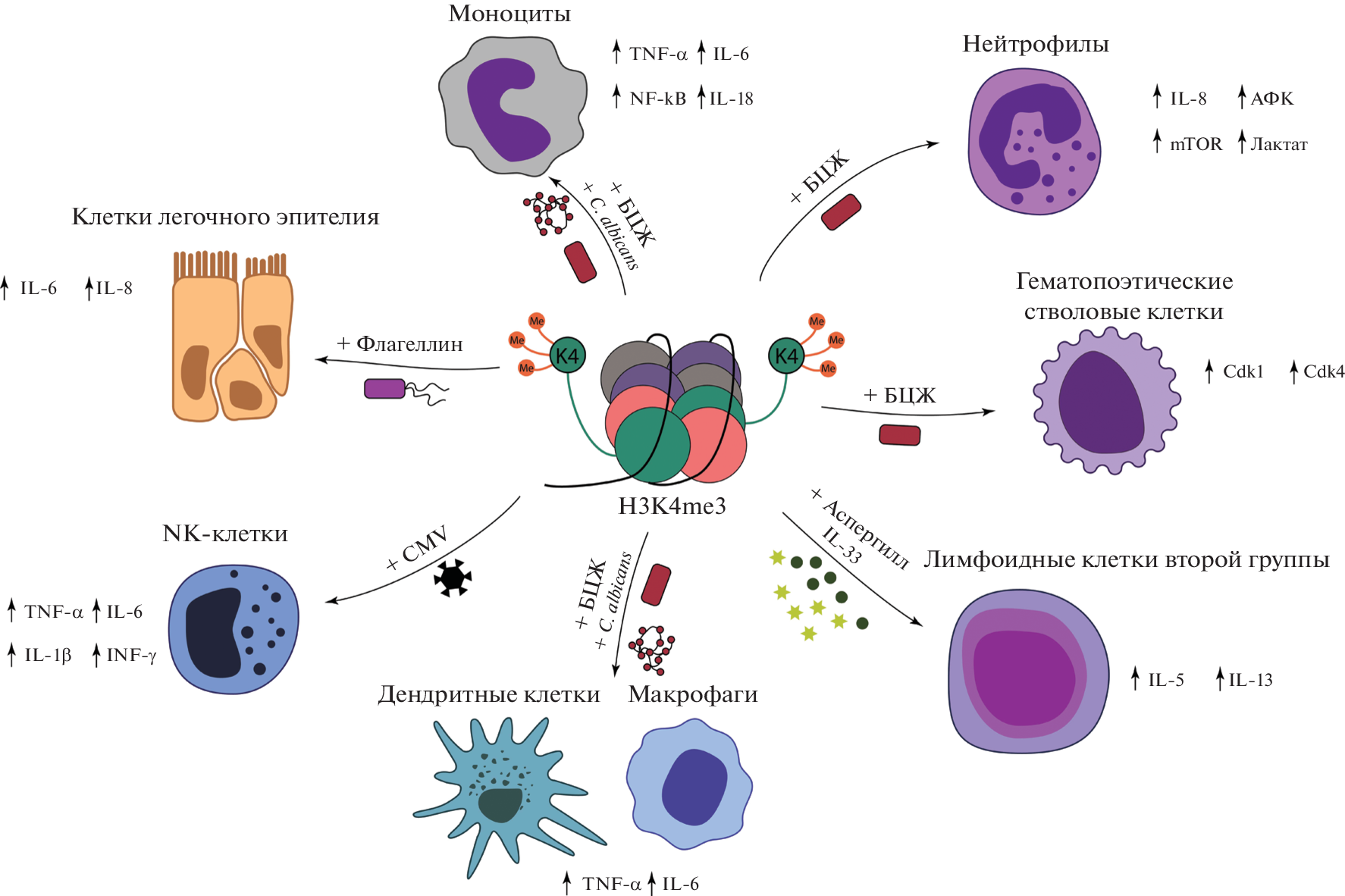 - Acevedo O.A., Berrios R.V., Rodriguez-Guilarte L. et al. Molecular and cellular mechanisms modulating trained immunity by various cell types in response to pathogen encounter // Front. Immunol. 2021. V. 12. https://doi.org/10.3389/fimmu.2021.745332