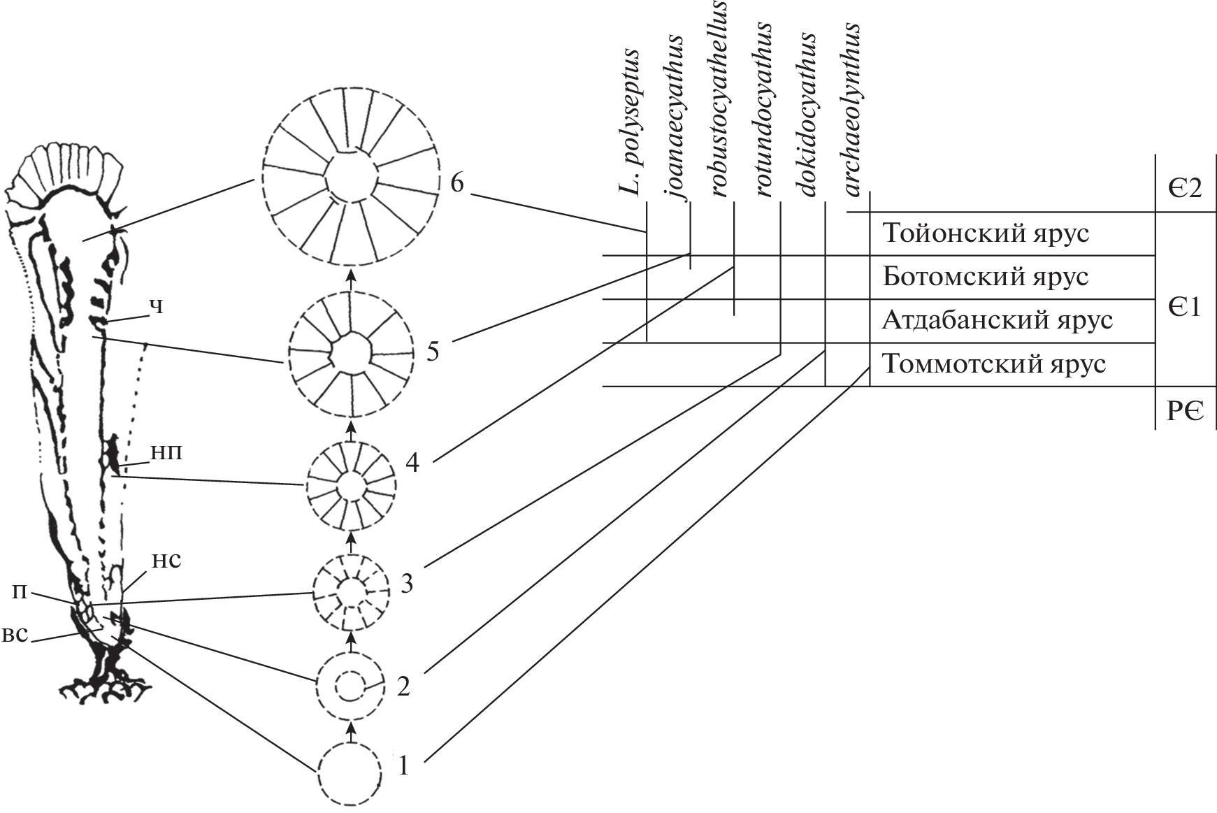 - Розанов А.Ю. Закономерности морфологической эволюции археоциат и вопросы ярусного расчленения нижнего кембрия // Тр. ГИН АН СССР. 1973. Вып. № 241. 153 с.