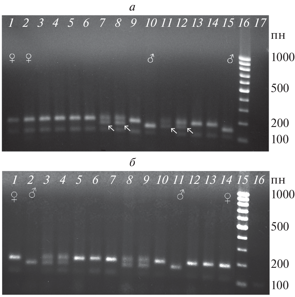 Одним из основных компонентов апомиктичного размножения растений является формирование нередуцированных зародышевых мешков (ЗМ). Эффективным инструментом для выявления способности к формированию таких ЗМ могут служить гетероплоидные скрещивания, в которых материнские диплоидные растения опыляют пыльцой тетраплоидов. У кукурузы в скрещиваниях 2n(♀) × × 4n(♂) формируются как правило щуплые зерновки с триплоидным зародышем, у которых развитие эндосперма нарушено ввиду отклонения баланса материнского (м) и отцовского (о) геномов от соотношения 2м : 1о. В наших экспериментах у нескольких диплоидных линий кукурузы при опылении их пыльцой тетраплоидов наблюдалось формирование крупных выполненных зерновок, из которых развивались диплоидные растения матроклинного типа, причем материнский фенотип растений, а также гибридный фенотип эндосперма были подтверждены экспрессией генетических маркеров. Было высказано предположение, что выполненные зерновки в 2n × 4n скрещиваниях возникают на основе нередуцированных ЗМ и псевдогамного апомиксиса, поскольку слияние двух диплоидных полярных ядер с диплоидным спермием обеспечивает соотношение материнского и отцовского геномов в эндосперме 2м : 1о. С целью уточнения генетической природы диплоидных растений, фенотипически сходных с материнскими линиями, которые развивались из выполненных зерновок в скрещиваниях 2n × 4n, нами было проведено их генотипирование по всем десяти хромосомам генома кукурузы с помощью полиморфных кодоминантных SSR- и Indel-маркеров, дифференцирующих отцовскую линию-опылитель от материнских линий. В качестве материнских форм использовали линию ГПЛ АТ, обладающую способностью к гаплоидному партеногенезу, растения из поколения F2 гибрида между линией В47, способной к формированию нередуцированных ЗМ, и линией ГПЛ АТ. Кроме того, в скрещивания была включена линия Коричневый Маркер (КМ), несущая маркерный ген B коричневой окраски стебля, а также линия ЮВ11. В качестве отцовской формы использовали тетраплоидную кукурузу Черная Тетра (ЧТ), несущую маркерный ген A1 черной окраски зерновок. Установлено, что у всех исследованных растений при использовании маркеров пяти хромосом – 1-й (iDp525), 2-й (iDP4004), 3-й (JY_3:457), 4-й (UflDP4_31.55), 9-й (INDEL_139329242) – наблюдалась амплификация только материнских аллелей. Однако у каждого из изученных растений при использовании маркеров других хромосом были отмечены случаи амплификации аллелей, свойственных отцовской линии. Высказывается гипотеза о формировании диплоидных растений в 2n × 4n скрещиваниях у кукурузы на основе оплодотворения нередуцированных ЗМ и последующей элиминации хромосом преимущественно отцовской линии.