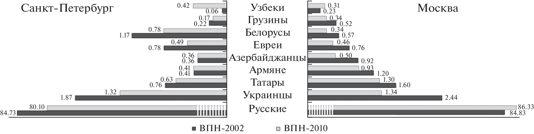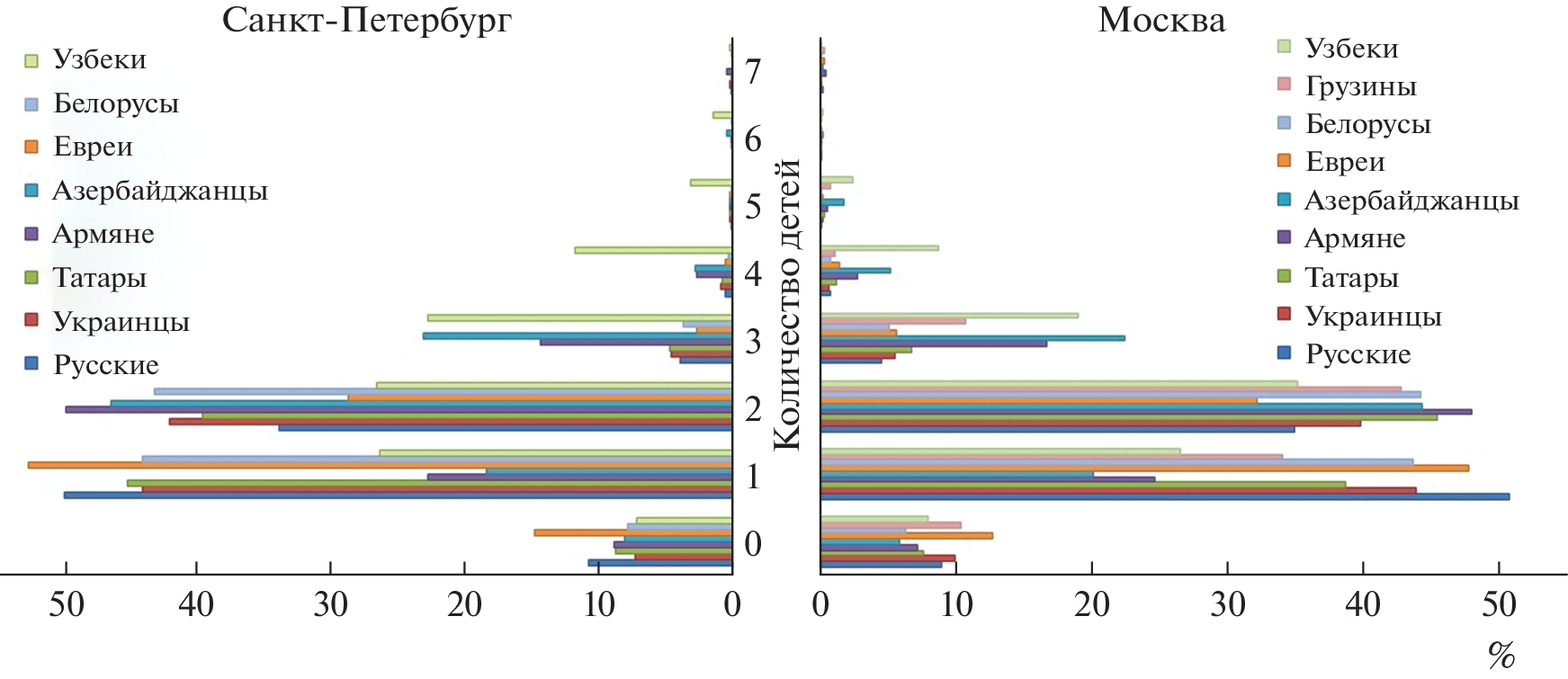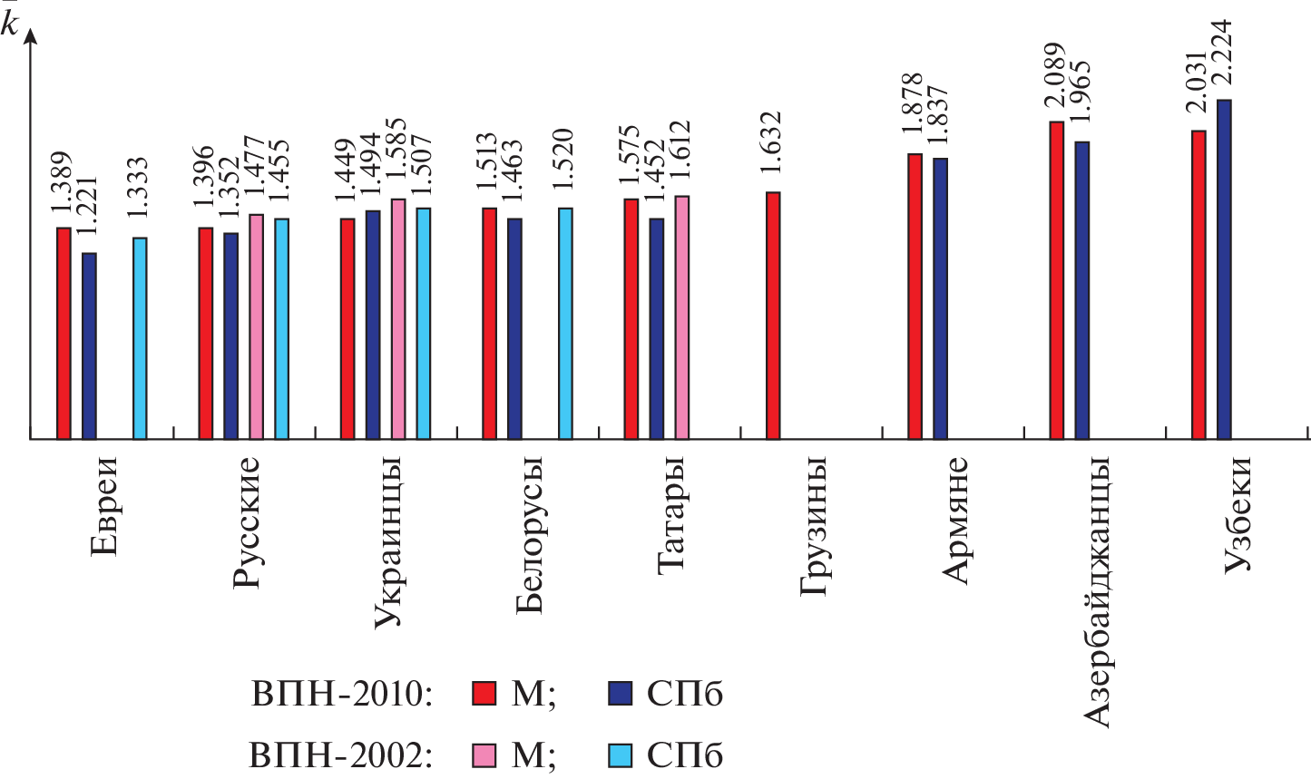 Genetic-Demographic Analysis of Natural Reproduction Parameters and Crow’s Indices in Ethnic Groups of Moscow and St. Petersburg (Based on the 2010 Russia’s Population Census)