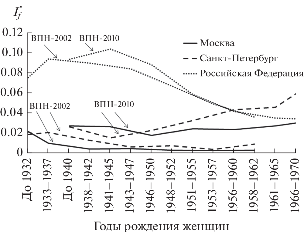 Based on the analysis of the materials of the 2010 All-Russia’s Population Census and the demographic statistics of Rosstat Agency, the genetic-demographic parameters of temporal and interethnic variability of natural reproduction parameters and selection parameters (Crow indices) were calculated for the most numerous ethnic groups of Moscow and St. Petersburg. A decrease in the selection component due to differential prereproductive mortality was shown to decrease to the minimum possible values (index Im < 0.01). In both megacities, interethnic differences were revealed in the parameters of natural reproduction and the selection component due to differential fertility, while the birth rate in both capitals for all ethnic groups, except for Uzbeks in St. Petersburg, is lower than required even for simple reproduction of the population, and hence stable reproduction of the gene pool. This indicates the unfavorable nature of the genetic and demographic processes in all the represented nationalities of the megacities. The If index ranges from 0.2 to 0.5. The temporal dynamics of the average number of offspring and its variance, as well as the If index, traced according to the data on the age cohorts of women born in the 1940s–1960s, is weakly expressed – the tendency to selection relaxation is not observed for all the studied ethnic groups. It is shown that the intensity of intergroup selection, due to interethnic differences in fertility, in the population of St. Petersburg increases from older age cohorts to younger ones, while in the population of Moscow it does not change significantly, while the temporal dynamics of this indicator, calculated on the base of the materials of the 2002 All-Russia’s Population Census for cohorts born in 1930s–1950s has the opposite direction. The genetic-demographic consequences of the revealed tendencies are discussed.