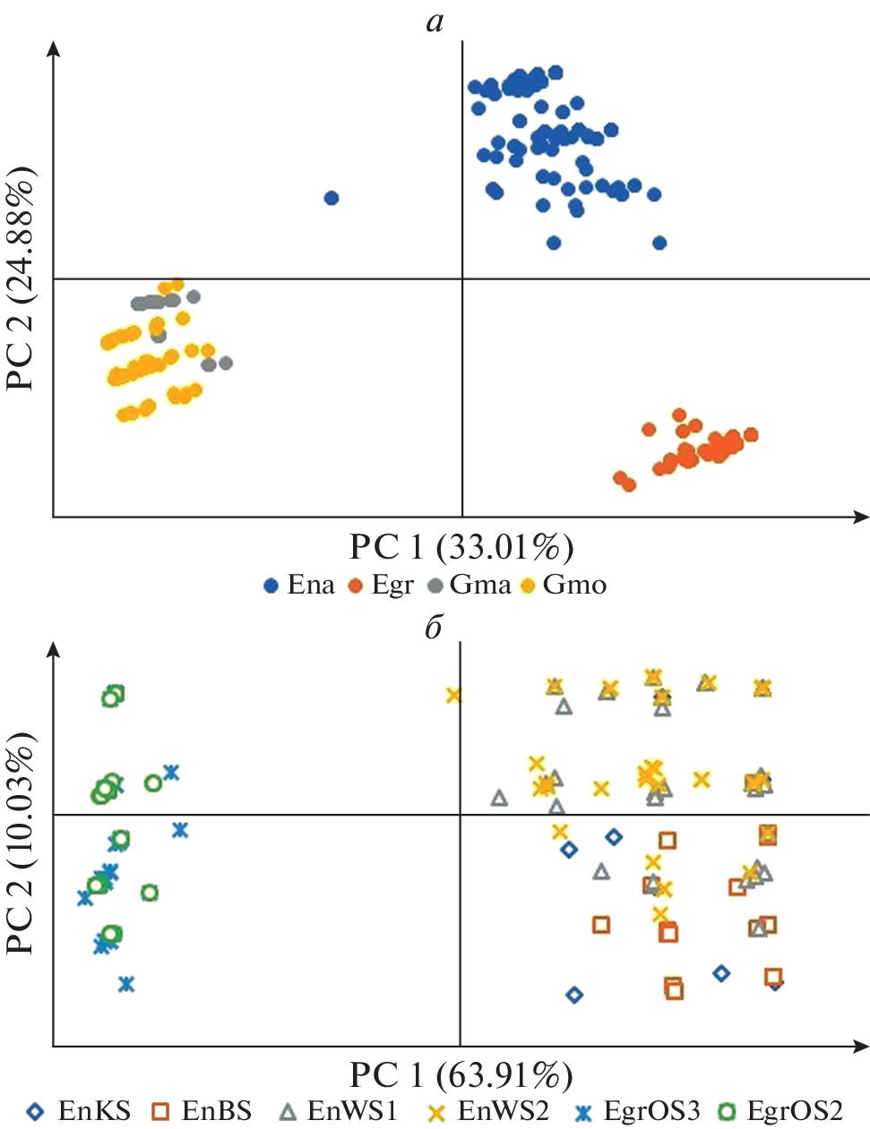 - Peakall R., Smouse P.E. GenAlEx 6.5: Genetic analysis in Excel. Population genetic software for teaching and research an update // Bioinformatics. 2012. V. 28. № 19. P. 2537–2539. https://doi.org/10.1093/bioinformatics/bts460