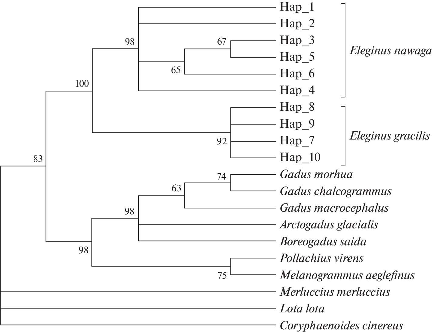 Genetic methods based on the study of the variability of mitochondrial (CO1) and nuclear (microsatellites) DNA were used to study the processes of morphogenesis in the genus Eleginus. The revealed level of genetic differentiation characterizes the Pacific Saffron cod (Eleginus gracilis) and Navaga (Eleginus nawaga) as independent species that diverged in a relatively recent period at the boundary of the Pliocene and Pleistocene. The White Sea Navaga’s populations were by microsatellites markers differed from the Navaga inhabiting the basins of the Kara and the Barents seas. At the same time, it is assumed that the Kara-Barents Sea region could act as a “glacial refugium”, which ensured the post-glacial settlement of Navaga, including in the “watered” White Sea depression. Phylogenetic analysis based on CO1 haplotypes diversity reveals demand of possible reorganization in order Gadiformes, including Eleginus in an independent subfamily – sister in relation to the subfamilies Gadinae, Lotinae, Merlucciinae. The prospects of improving genetic methodological approaches in the framework of the development of research on Saffron cod are noted.