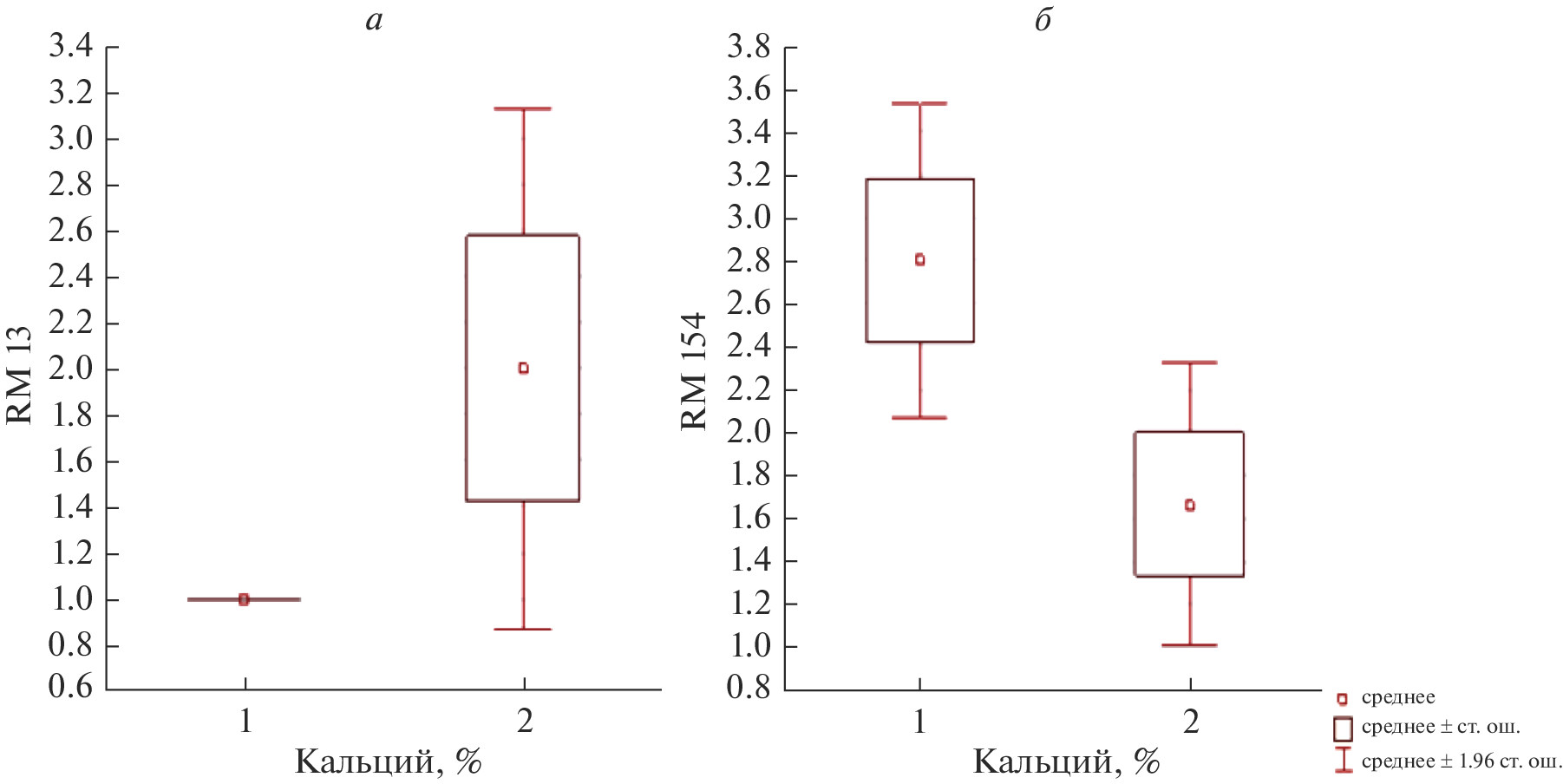 There has been a wide variation in the content of micro and macro elements, both between subspecies and within rice species and varieties. Magnesium as a cofactor is involved in more than 300 enzymatic reactions and is necessary for growth and development of both plants and humans. It affects carbohydrate and protein metabolism. Both adenosine triphosphate (ATP) production, nucleotide and glucose synthesis, and lipid oxidation regulation depend on its concentration. Calcium is also essential for the formation of cell wall structure and cell division. High concentrations of calcium change the composition and condition of red blood cell membranes and cell morphological characteristics. At the same time the variability in signs of domestic rice varieties has not yet been studied. There have been no studies on the localization of chromosomal regions responsible for the formation of traits of magnesium and calcium content in rice samples. Wide variation in calcium content (0.07–2.33%) and magnesium content in rice samples (2–14%) was established. Contrasting groups of varieties and sources by signs were identified. A search for chromosomal regions determining the quality of domestic samples was carried out using 58 molecular markers distributed across the rice genome (SSR). The data on phenotyping of native rice varieties by quality signs were used to divide them into groups with maximum trait value (1) and minimum trait value (2). The relationship between phenotypic manifestation of the trait and the genotype of the sample was established: by means of analysis of variance. Eight loci determining magnesium and calcium content in native rice varieties – were identified. The loci determining magnesium content are located on chromosomes 5, 6, 7, 8. Four loci associated with calcium content were identified two on the second chromosome and one each on the eighth and fifth chromosomes. On the fifth chromosome, it is located (RM 13, 28.6 cM) in close proximity to the RM 405 marker region (28 cM), which is connected with magnesium content.
