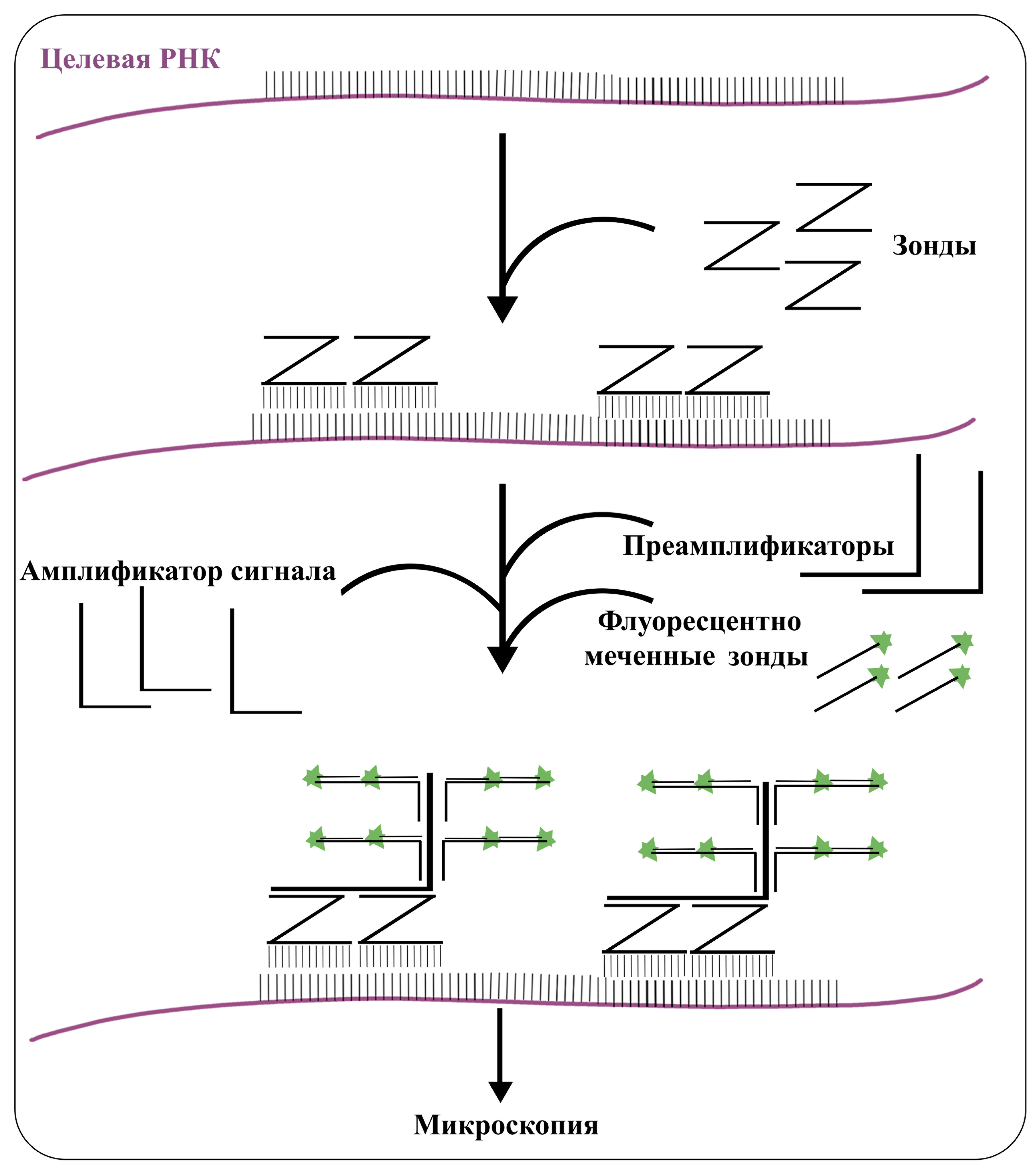 Рис. 1. Принцип работы технологии RNAscope, использующей ZZ-зонды.
