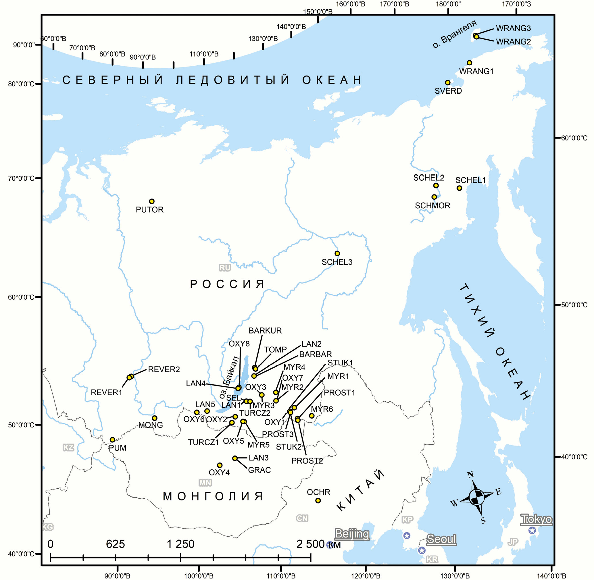 3. Забайкальский край, окр. оз. Кункур (8) | 50°42′36″; 114°53′24″ | PROST3 |