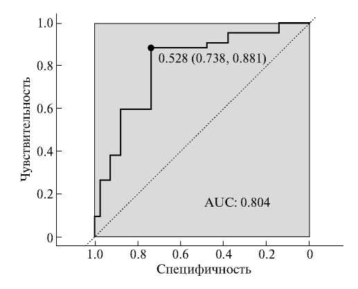 Рис. 4. ROC-анализ для прогнозирования ответа на терапию ИКТИ при скПКК на основе анализа экспрессии экзосомальной микроРНК-424.