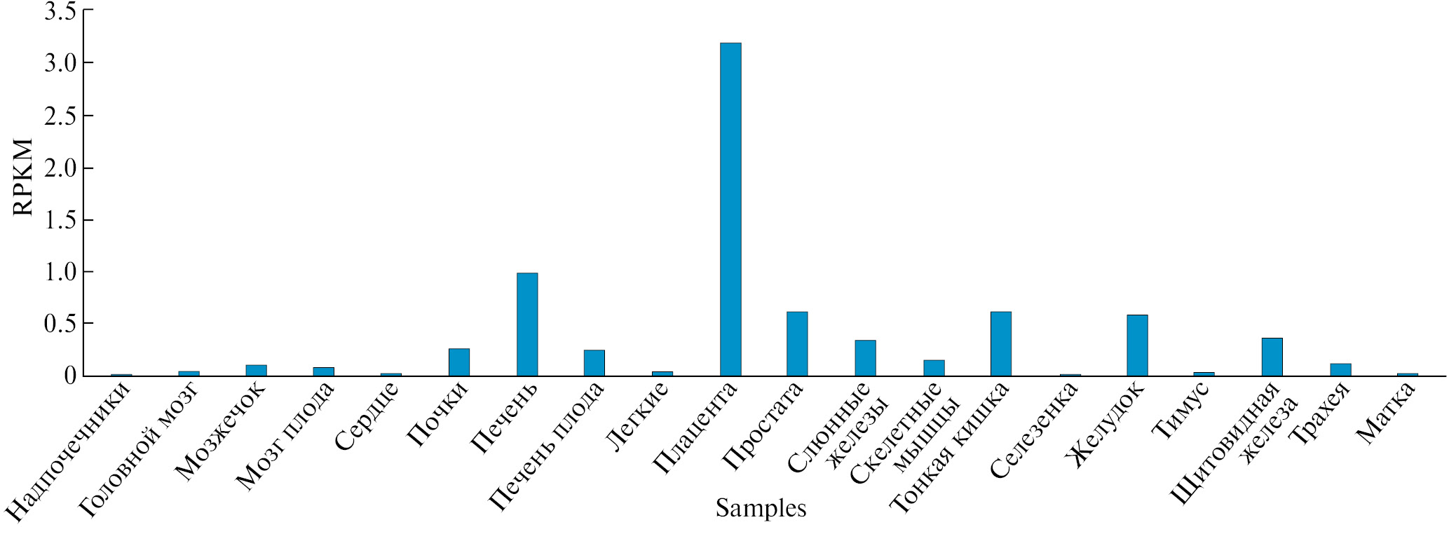 Рис. 4. Уровень экспрессии NIPAL1 в 20 различных тканях человека (цит. по [20]).