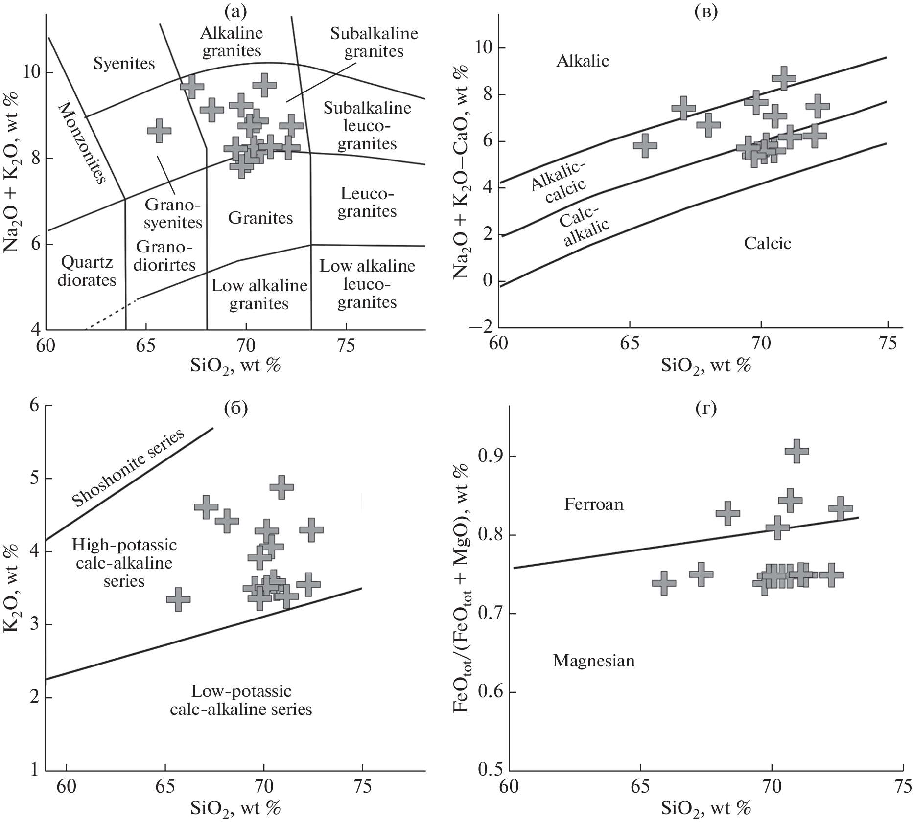 - Whalen J.B., Currie K.L., Chappell B.W. (1987) A-Type Granites – Geochemical Characteristics, Discrimination and Petrogenesis. Contributions Mineral. Petrol. 95(4), 407-419.