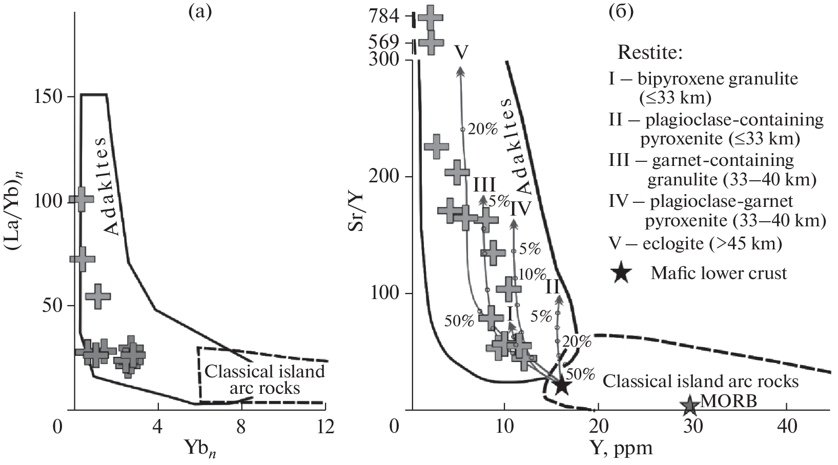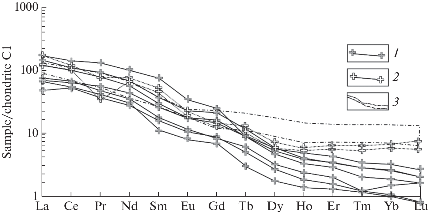 The examination of original and available petrochemical, geochemical, and isotope (Sm-Nd, Rb-Sr) data showed that subalkaline granitoids in the northern framing of the eastern flank of the Mongol–Okhotsk orogenic belt belong to the adakite series. The granitoids are characterized by high Sr/Y, Sr, Al2O3, and LREE, extremely low HREE concentrations, and the absence of negative Eu anomalies. The results obtained and the analysis of the geodynamic setting of their formation made it possible to assume that the granitoids were formed at a depth of more than 45 km through melting of garnet-bearing (20–50% garnet) rocks, which are likely represented by lower crustal Precambrian complexes widespread in the southern framing of the Siberian craton. The source of parental melts involved both mantle and crustal matter. This likely occurred in a subduction setting through melting of frontal or lateral parts of oceanic slab in subduction “windows”. The Late Jurassic–Early Cretaceous Chubachin adakite complex (149–138 Ma) was distinguished. Its formation preceded the initiation of suprasubduction differentiated calc-alkaline magmatism (140–122 Ma) in the northern framing of the eastern flank of the Mongol–Okhotsk orogenic belt.