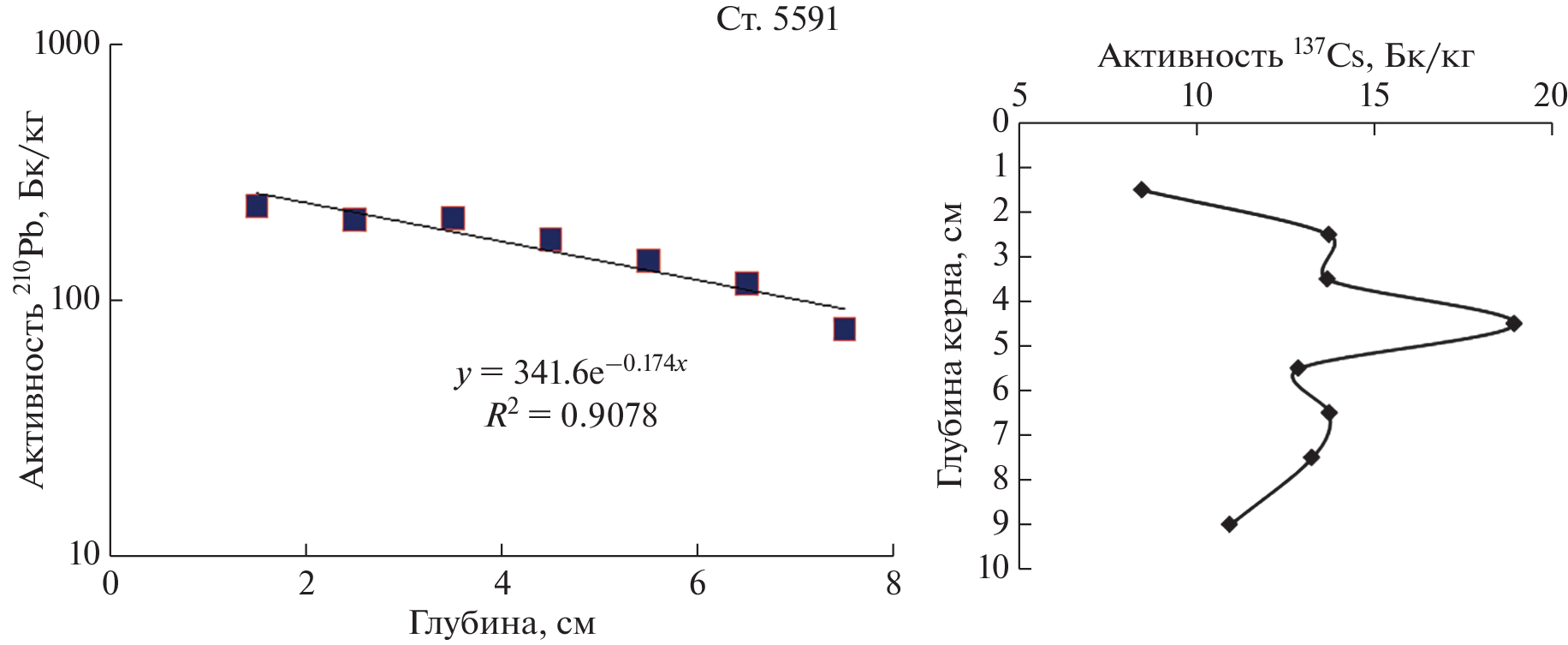 In the presented work, the features of the distribution of Cs-137 and plutonium isotopes in modern sediments of various parts of the Laptev Sea, selected during the expedition studies on the RV “Academician Mstislav Keldysh” in 2017 and 2019, were studied. It was found that the activity of Cs-137 in water and sediments is within the global level, which is typical for the seas of the Arctic region. In all the collected samples the specific content of Pu-239,240 isotopes is below the level of the minimum detectable activity. According to the results of isotope analysis of Pb-210, the sedimentation rates in two columns collected in the Laptev Sea are 0.18 and 0.23 cm/year. The study by several methods of the speciation forms of Pu-239, introduced into the samples of bottom sediments under laboratory conditions, showed that the main content of Pu-239 is associated with difficult-to-dissolve organo-mineral components. 30-39% Pu-239 was found in the composition of organic easily soluble acids and humic substances, which include fulvic and humic acids of bottom sediments.
