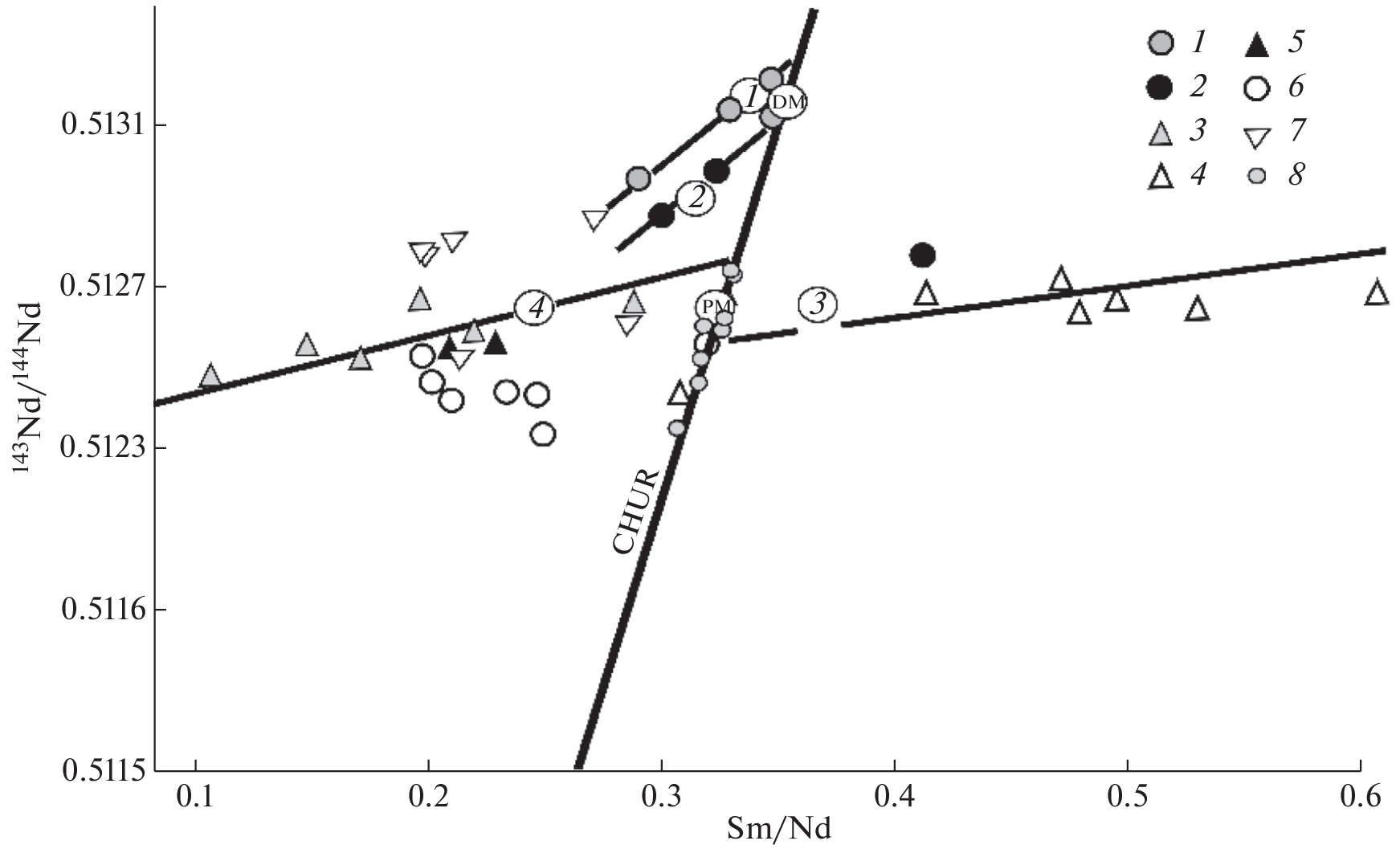- Wasserburg G.J., Jacobsen S.B., De Paolo D.J., McCulloch M.T., Wen T. (1981) Precise determination of Sm/Nd ratios, Sm and Nd isotopic abundances in standart solutions. Geochim. Cosmochim. Acta. 45, 2311-2323.