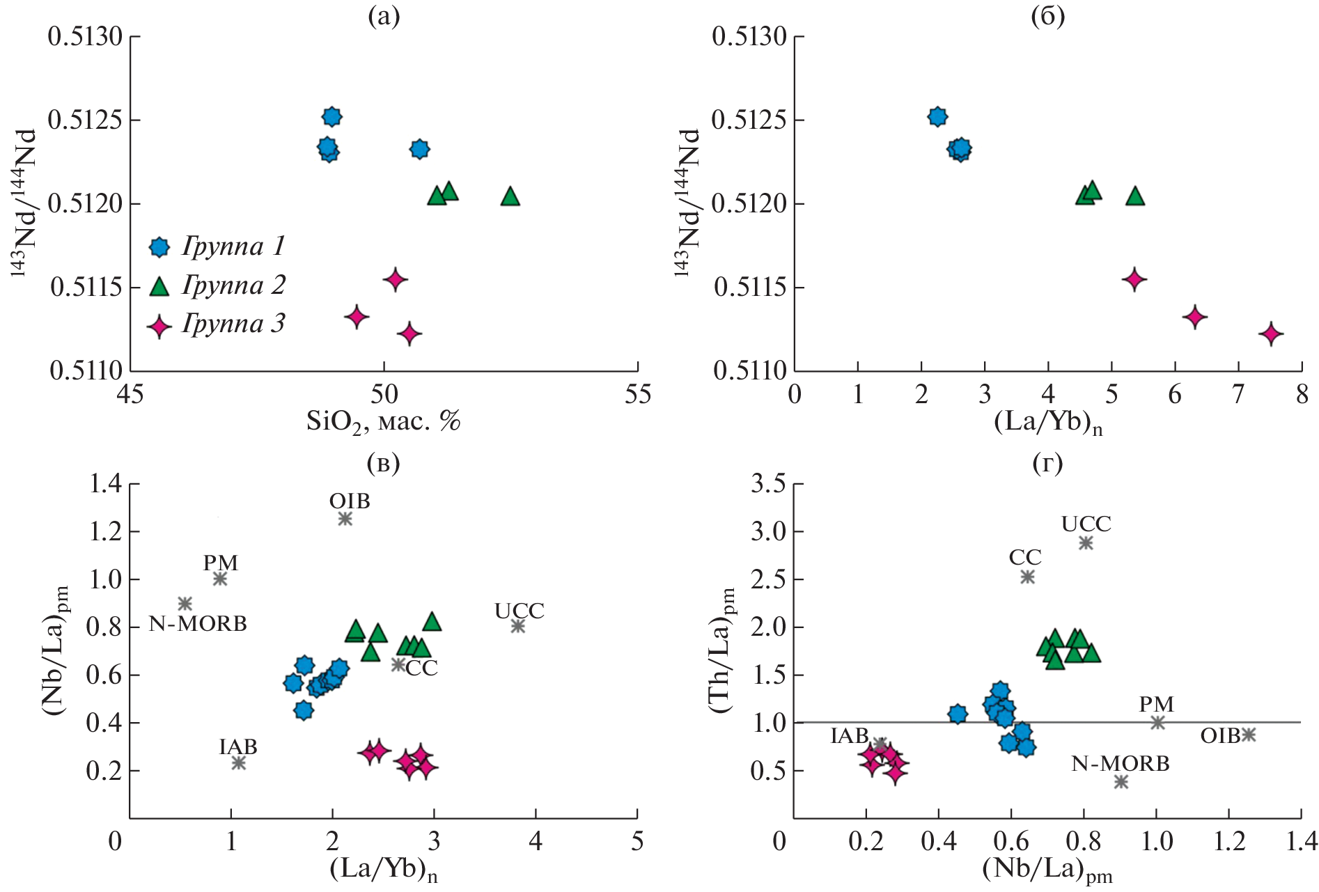 The paper presents detailed geological, petrographic, geochemical, and isotope data on the dolerites from dykes of the Baikal dike subswarm in the central part of the Baikal basement inlier of the Siberian craton. The main geochemical and isotope criteria were identified for classifying the dolerites that are similar in geological–structural position and mineral composition into three geochemical groups. Provisional age estimates of the dolerites are presented. The dolerites of the first and, perhaps, second groups compose Neoproterozoic (715 Ma) dikes. The first group includes medium- to coarse-grained dolerites, which form thick (more than 5–10 m) dikes. The dolerites of this group are characterized by low concentrations of Th (0.6–2.1 ppm) and Nb (3.3–9.2 ppm) and by ɛNd(T) = ‒0.5 to ‒3.9. Considered together, the geochemical and isotope data show that these dolerites could be produced as a result of the melting of a mantle source produced by mixing mantle components close in composition to oceanic plateau basalts and subduction-related subcontinental lithospheric mantle. The second group includes fine-grained dolerites from thin (1–5 m) dikes, including dikes located in contact with the dikes of the first group. The dolerites of the second group are characterized by higher concentrations of Th (3.0–5.3 ppm) and Nb (9.8–21.1 ppm) and by ɛNd(T) = –5.3 to ‒6.0. Geochemical and isotopic data on the dolerites of the second group indicate that continental crustal material was added to the mantle source unified for the dolerites of first and second groups. The third group includes medium-grained dolerites, which make up individual dikes that are contrastingly different in geochemical and isotope characteristics from the Neoproterozoic dolerites of the first and second groups. Dolerites of this group show low concentrations of Th (0.6–1.6 ppm) and Nb (2.7–5.1 ppm) at low values of (Th/La)pm (0.29–0.71) and 143Nd/144Nd (0.511223‒0.511544), which indicates that these dolerites may have been generated as a result of the melting of the subcontinental lithospheric mantle enriched in subduction components. Dolerites of the third group exhibit geochemical characteristics close to those of Paleoproterozoic (1.84 Ga) dikes of the South Siberian post-collisional magmatic belt.