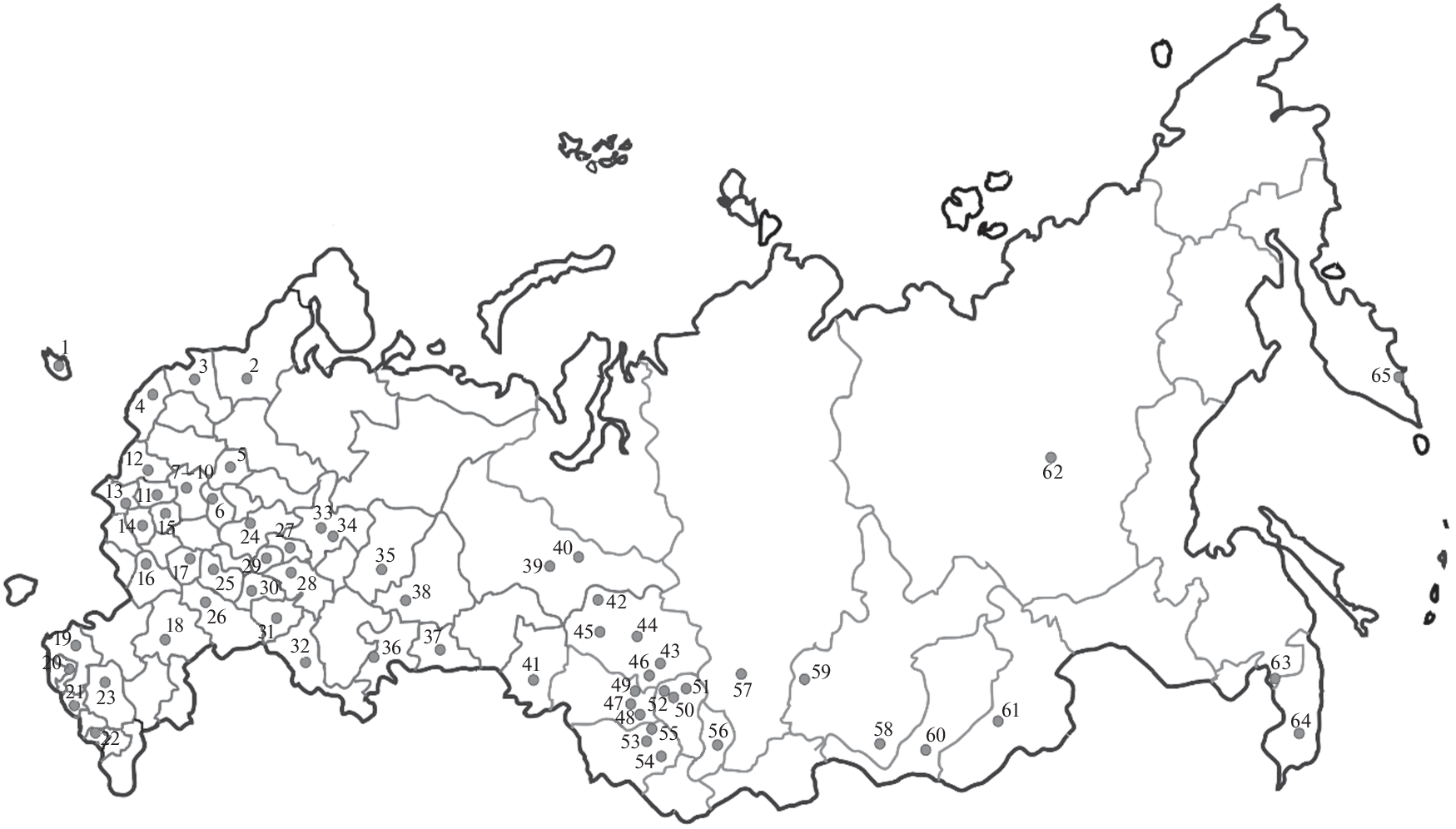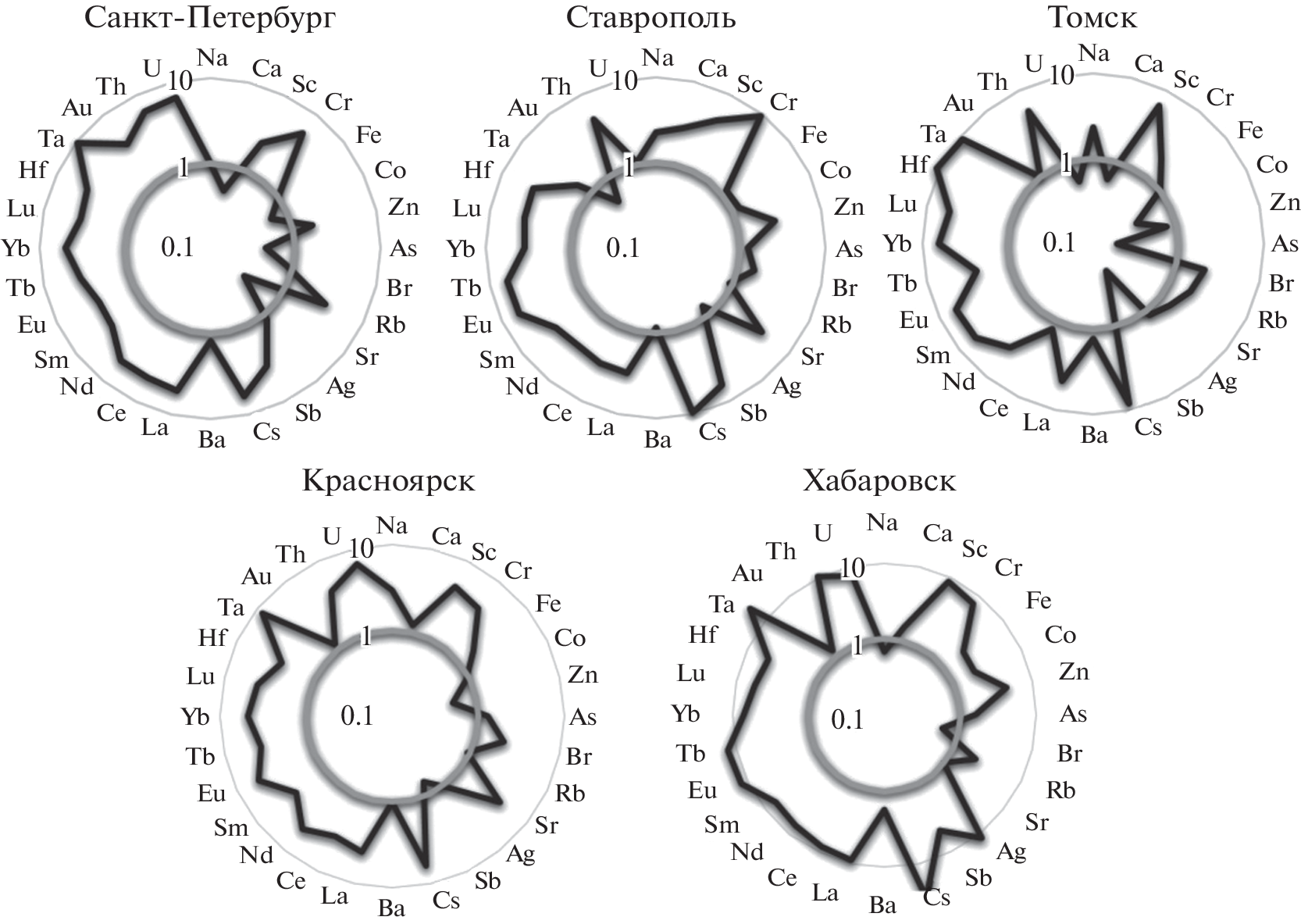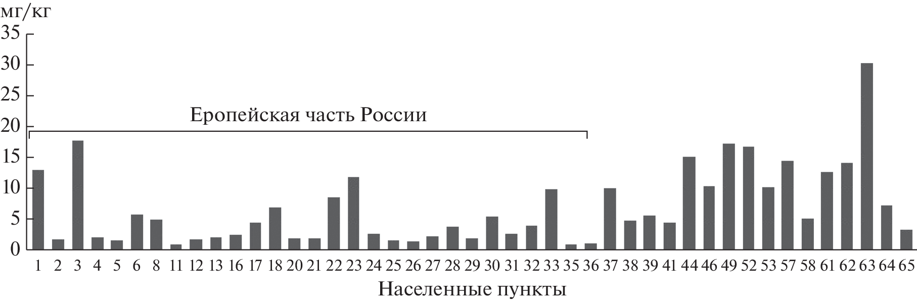 The paper presents the first ever data on the contents of 28 elements in aquatic plants of the duckweed family (Lemnaceae) in the territory of 65 population centers of the Russian Federation. Data are presented on the elemental composition of duckweed in the urbanized regions of Russia and on the spatial distribution of the studied elements and their calculated concentration coefficients relative to the estimated mean values in the macrophytes. The elemental composition of duckweed is shown to provide significant information about the current ecological and geochemical situation in the study area and can serve as an unbiased indicator of the impact of anthropogenic and natural factors on the environment.