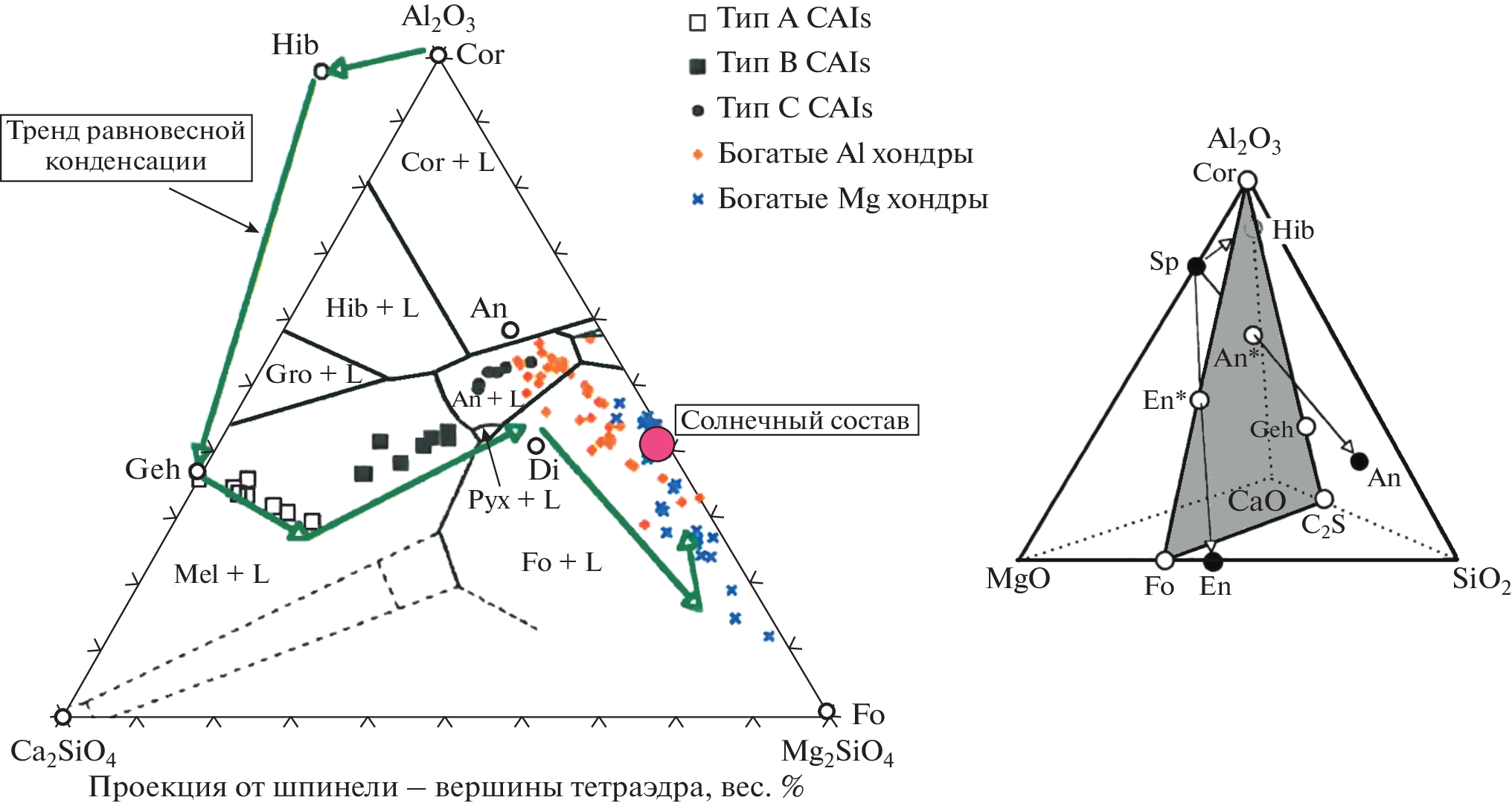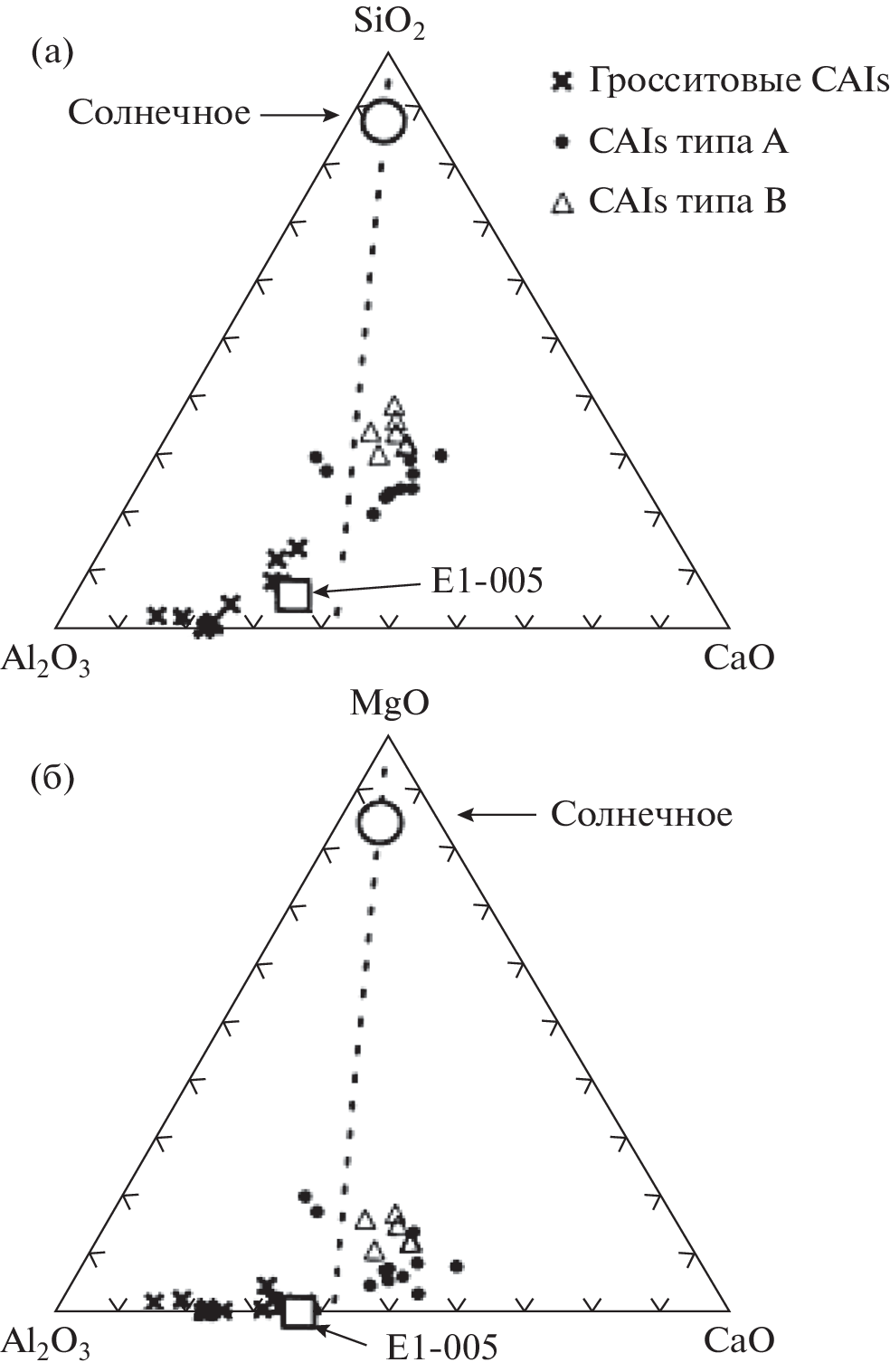 - Ryazantsev K.M. (2014) Formation of high-aluminum refractory inclusions in carbonaceous chondrites as a result of evaporation. 45th Lunar Planet. Sci. Conf., P. 1109.