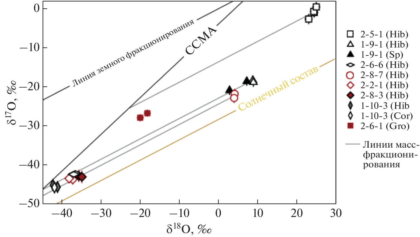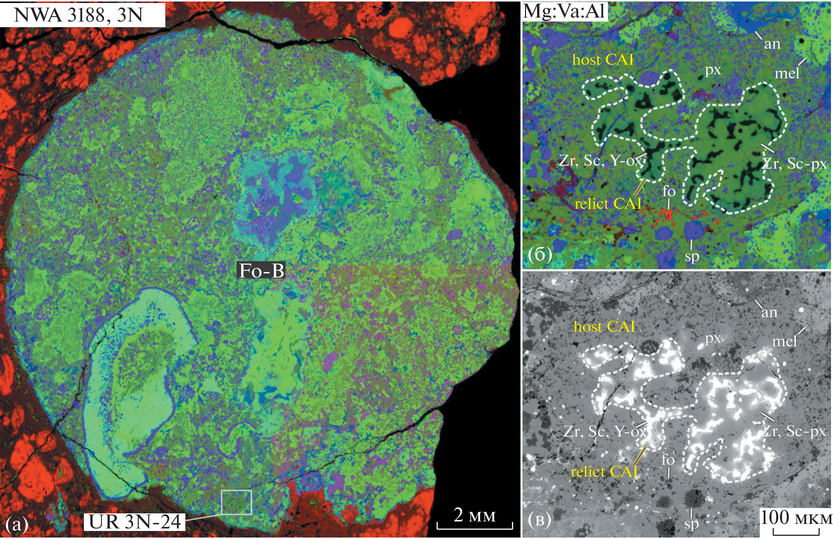 - Xiong Y., Zhang A.-C., Kawasaki N., Ma V., Sakamoto N., Chen J.-N., Gu L.-X., Yurimoto H. Mineralogical and oxygen isotopic study of a new ultrarefractory inclusion in the Northwest Africa 3118 CV3 chondrite. Meteorit. Planet. Sci. 55(10), 2184-2205