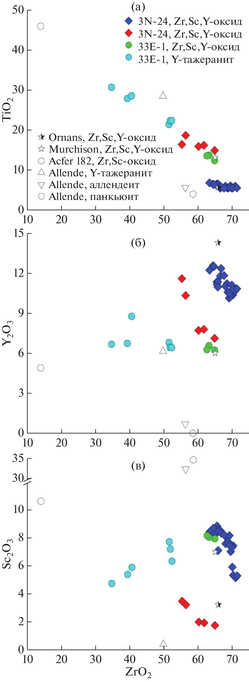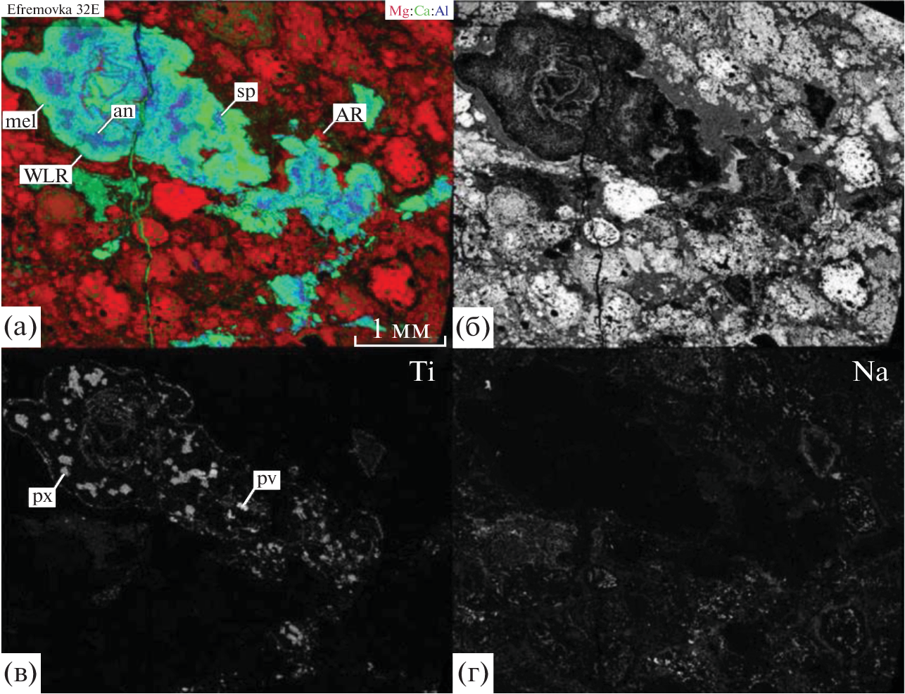 - Назаров М.А., Корина М.И., Ульянов А.А., Колесов Г.М., Щербовский Е.Я. (1984) Минералогия, петрография и химический состав богатых кальцием и алюминием включений метеорита Ефремовка. Метеоритика 43(10), 49-67.