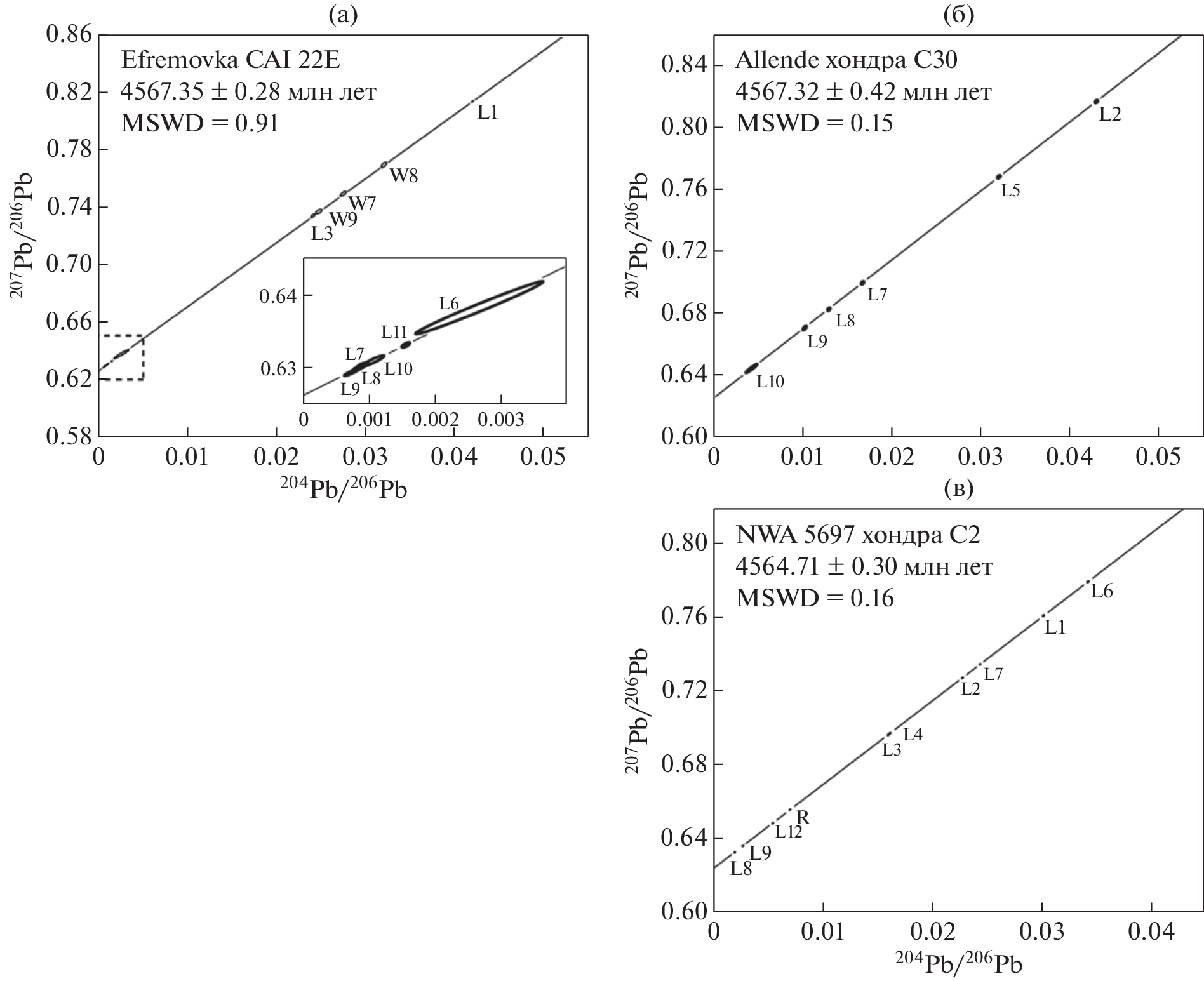 - Amelin Yu., Krot A.N., Hutcheon I.D., Ulyanov A.A. (2002). Lead isotopic ages of chondrules and calcium–aluminum-rich inclusions. Science 297(5587), 1678-1683.