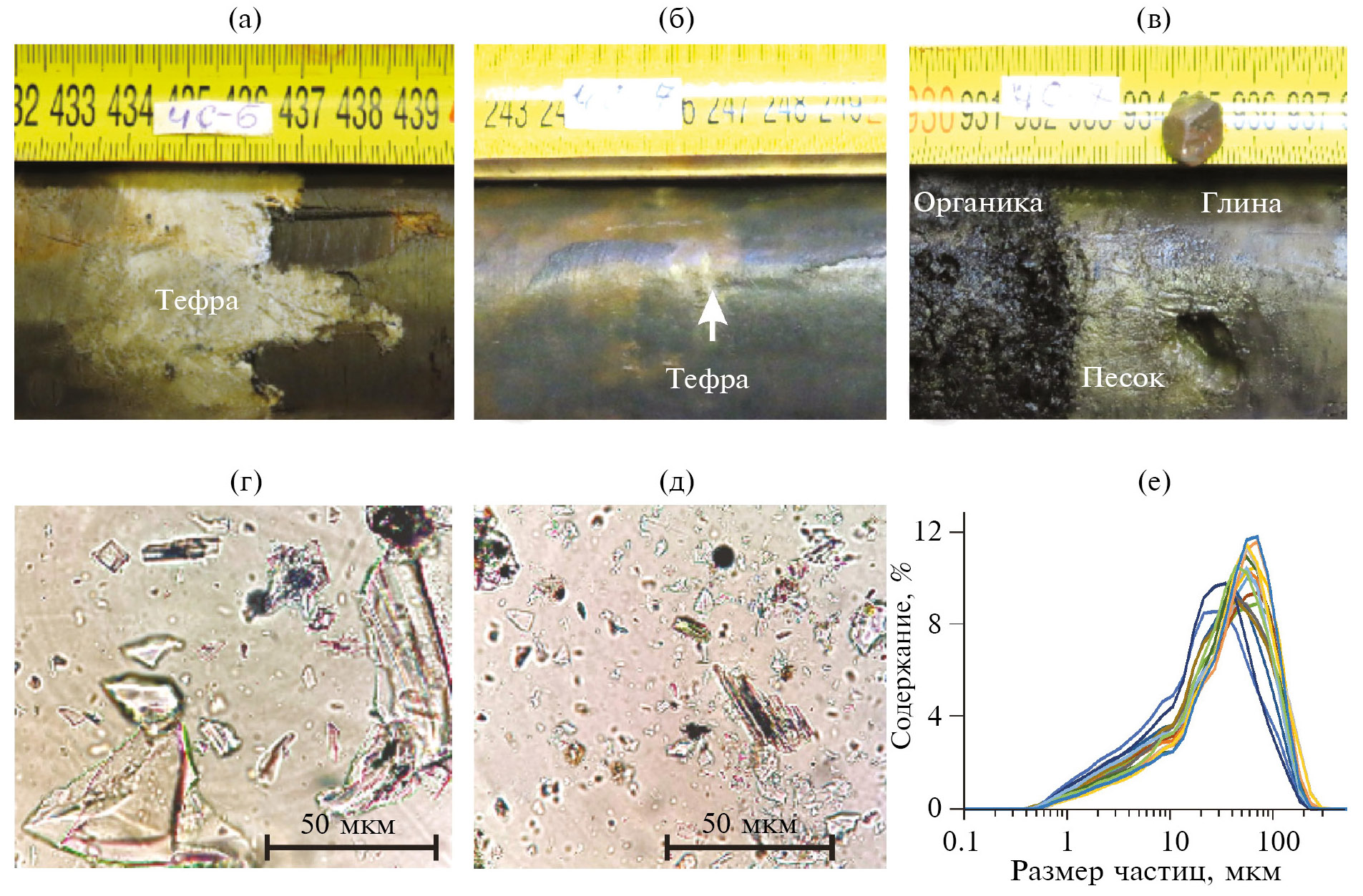 тефра | – | – | – | – | 7618 ± 14 | 8401 ± 20 |